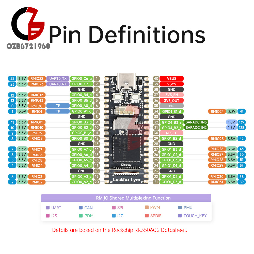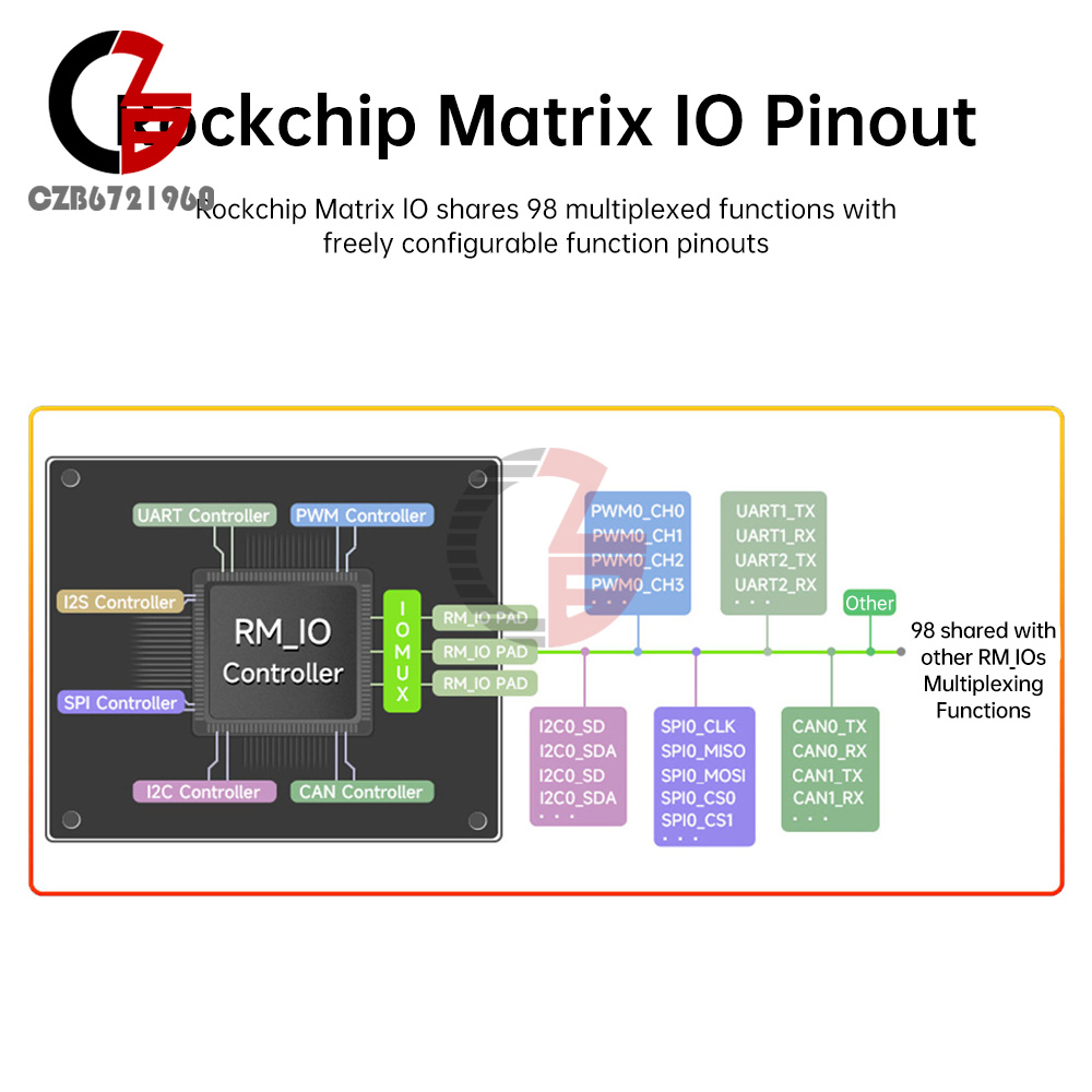4. Low-speed interface adopts Rockchip's Matrix IO design, which allows rich multiplexing functions to share the limited chip pins, making the peripheral circuitry adaptation more flexible.