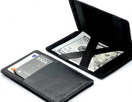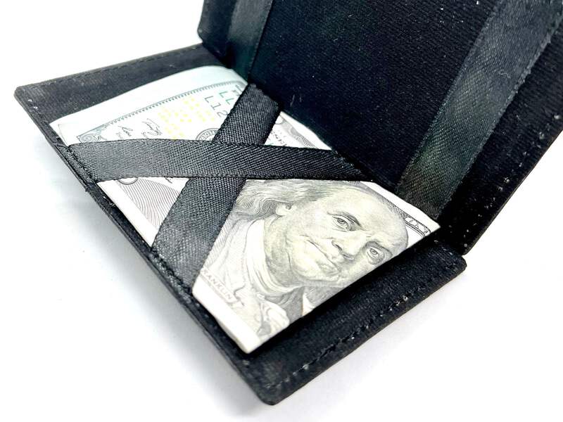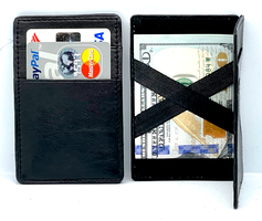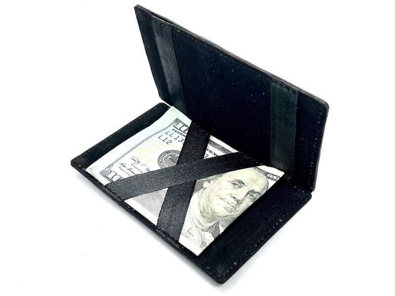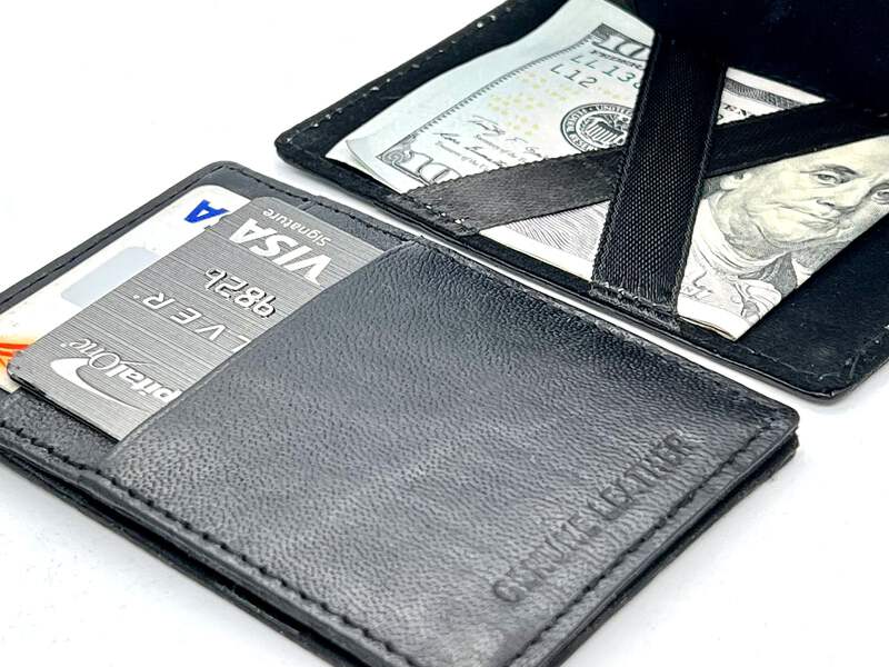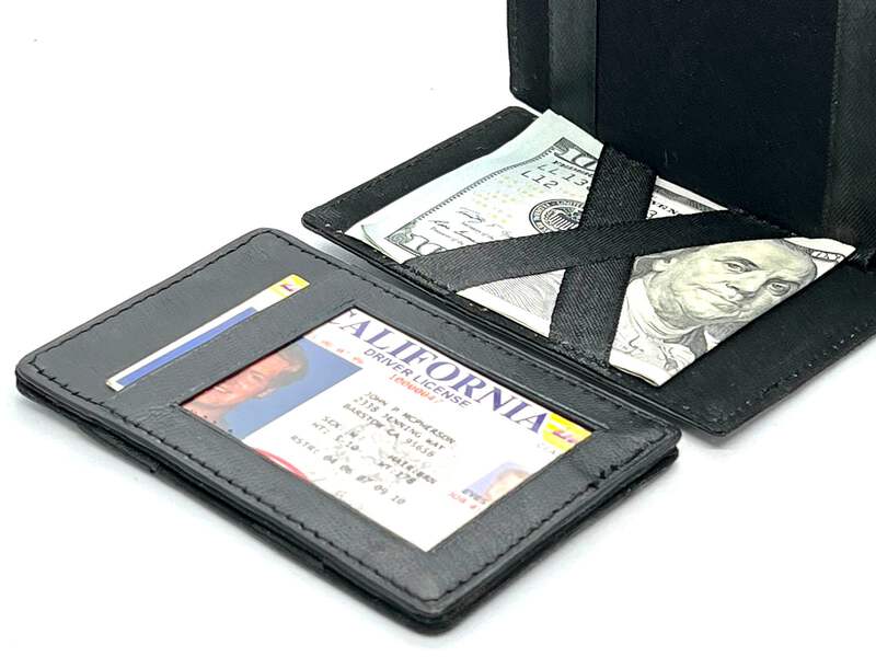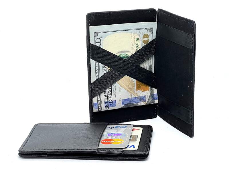Features:Condition: NewMaterial: Genuine LeatherThe flap can flip both sides, Secure Money and ticket holder DesignCan put Movie ticket(folded), receipt, cash, will be safely secured behind the Mystery Wallet ribbons(due to tightness of the design it's not very-elastic and it's normal to flip it open half way but not full).Inside Detail: Safety Money note and Ticket holderLength: about 4.125 inchesWidth: about 2.5inches