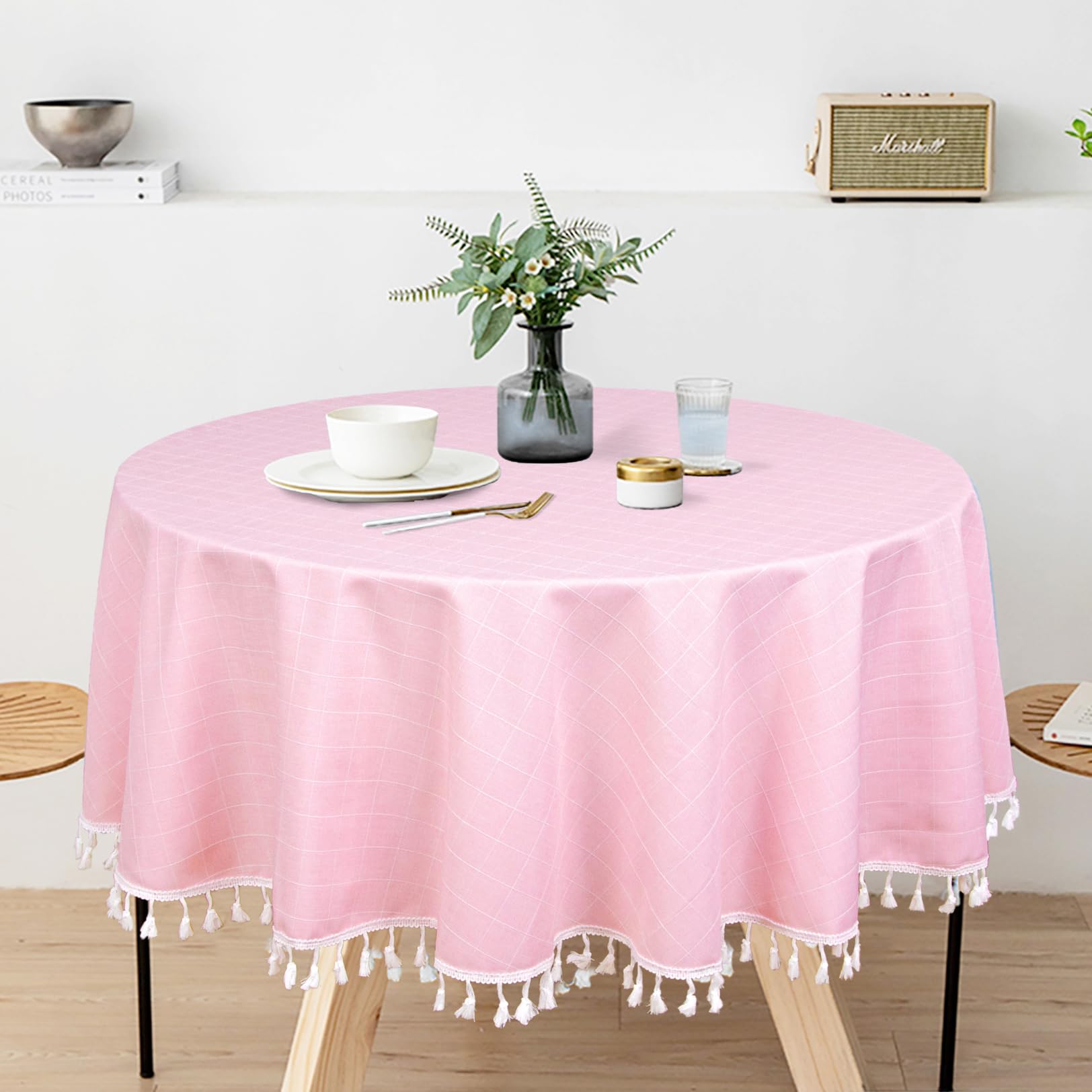 - ❤Checkered Tablecloth Size: 1pc 55 Inch Pink cotton linen tablecloth with tassel. This round smooth surface checkered tabletop cotton linen tablecloth is suitable for indoor and outdoor tables decorations.