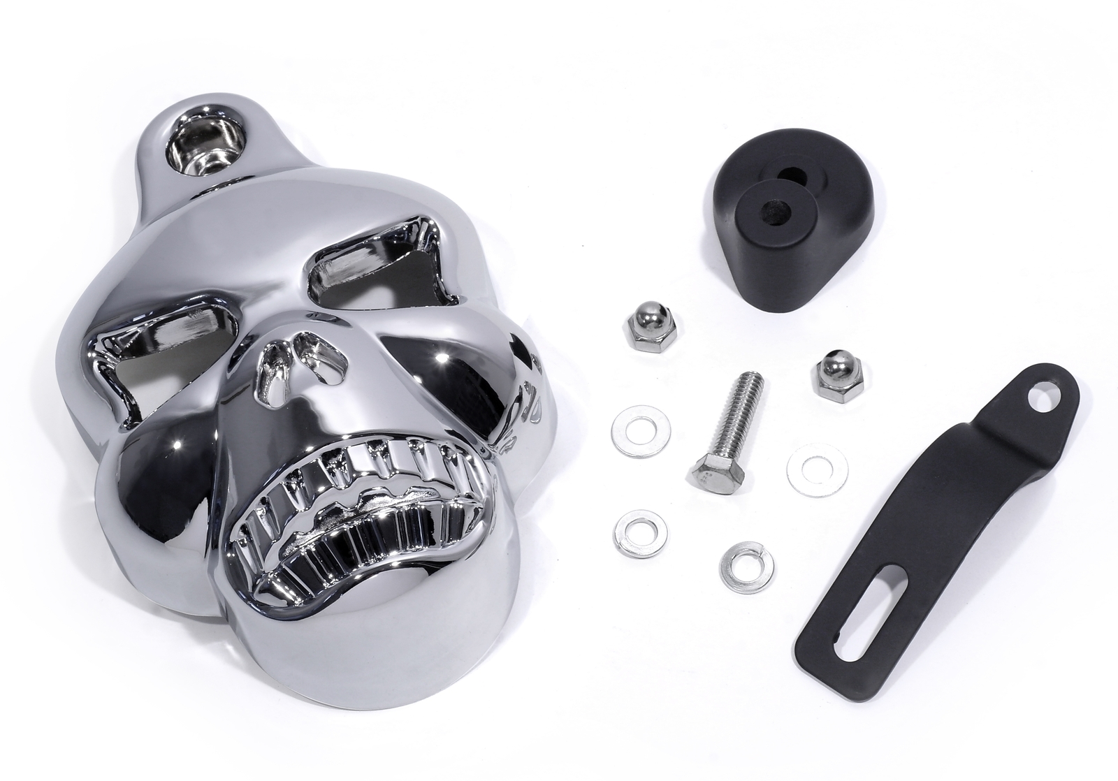 Cover clacson testa d'aquila in metallo nero per Harley Davidson e moto custom. Utilizzabile per tutti i modelli Evo e Twin Cam