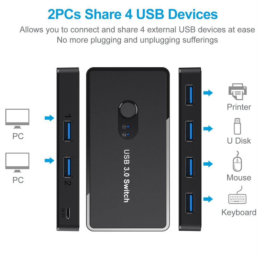 Switch USB 3.0 Switcher for PC Printer Scanner Mouse Keyboard 2 Computers