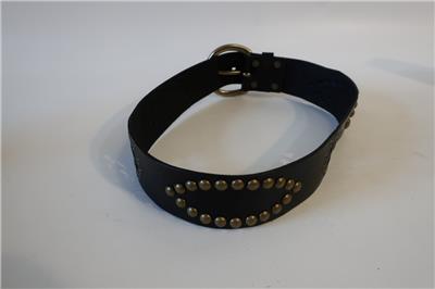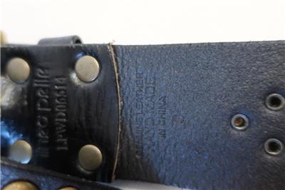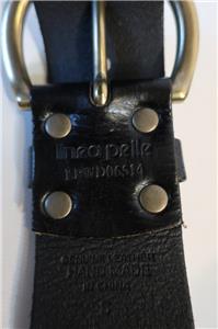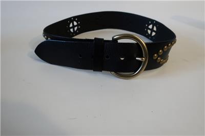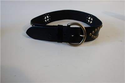 Womens Linea Pelle Black Leather Bronze Studded Perforated Belt W/Brass Buckle S