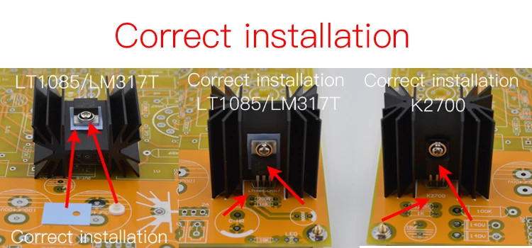 Pay attention to the polarity of electrolytic capacitors, diodes, , transistors as well as the orientation.
