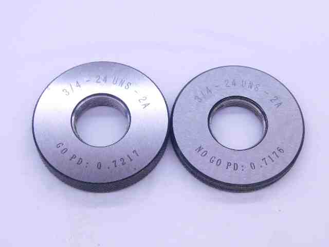 NEW 3/4 24 UNS 2A SOLID THREAD RING GAGES .75 GO NO GO P.D.'S = .7217 & .7176