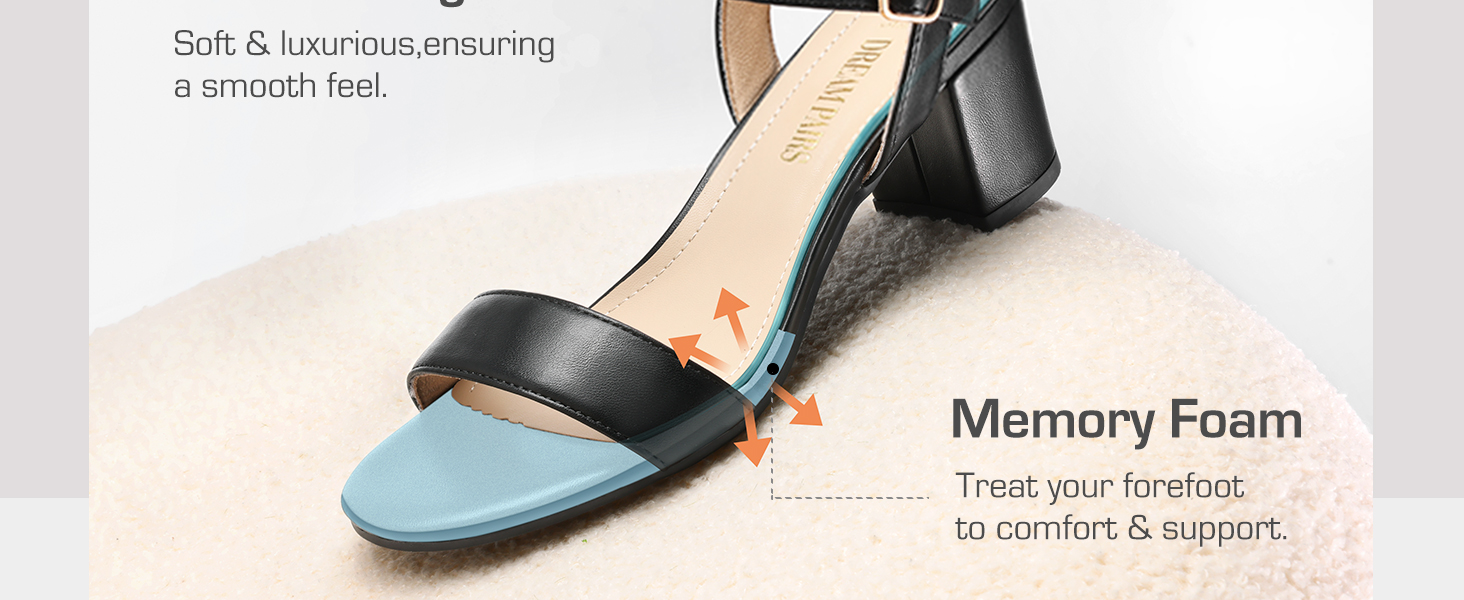 • Cushioned footbed made of thick, high-resilient memory foam for extra comfort and reduced discomfort.