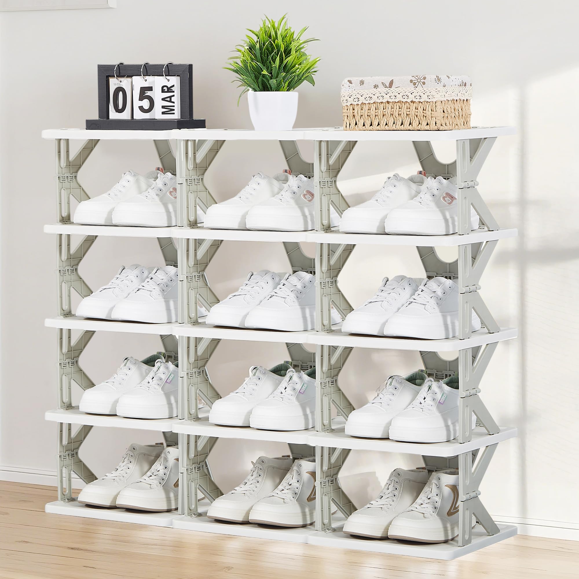 - Space Saving: This white shoe rack has a small footprint, allowing to maximize storage in the same space. Available in 4, 5 or 6 tiers, the compact design of this shoe shelves makes efficient use of corner space to store more shoes.