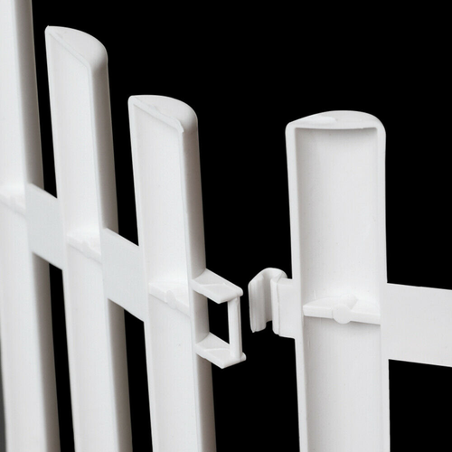 1. Made with very sturdy plastic that doesn't need to be painted, is highly UV resistant to fading and won't rust, peel or crack like wooden or metal fencing