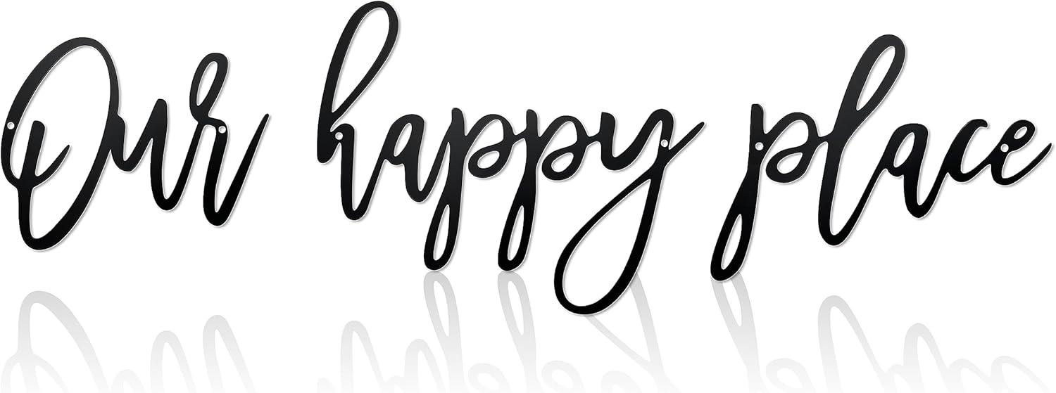 Metal Our Happy Place Wall Sign Decor Cut Words Laser black