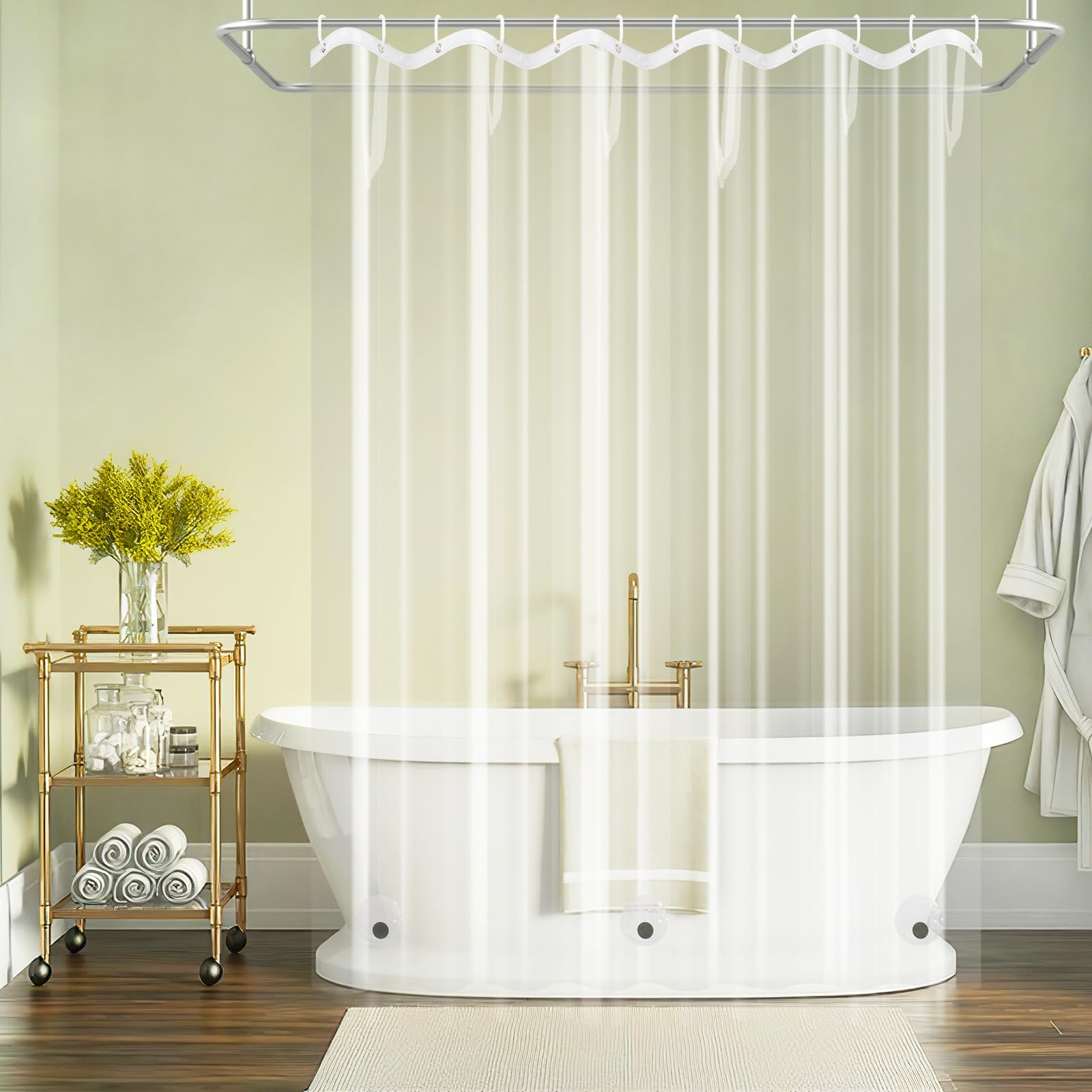- 【100% Waterproof & See Through】This transparent shower curtain allows light to pass through, making your bathroom look bright and clean. Featured waterproof and quick-drying to help you separate wet and dry areas easily in the bathroom.