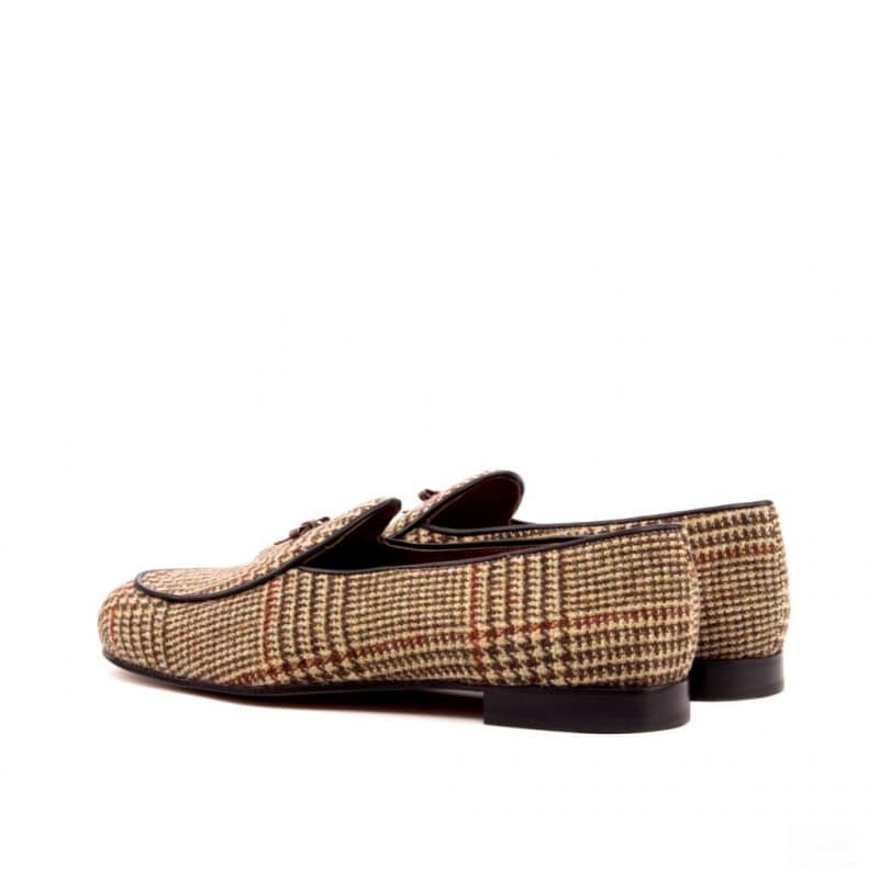 Introducing the Sheridan Rd. Belgian Loafer No. 3394 by Robert August – a combination of style, luxury, and expert craftsmanship. Handcrafted in Spain, this loafer exudes sophistication with its tweed upper adorned with sleek black calf leather piping and a statement brown croco bow. The detailing on this loafer is simply unmatched.