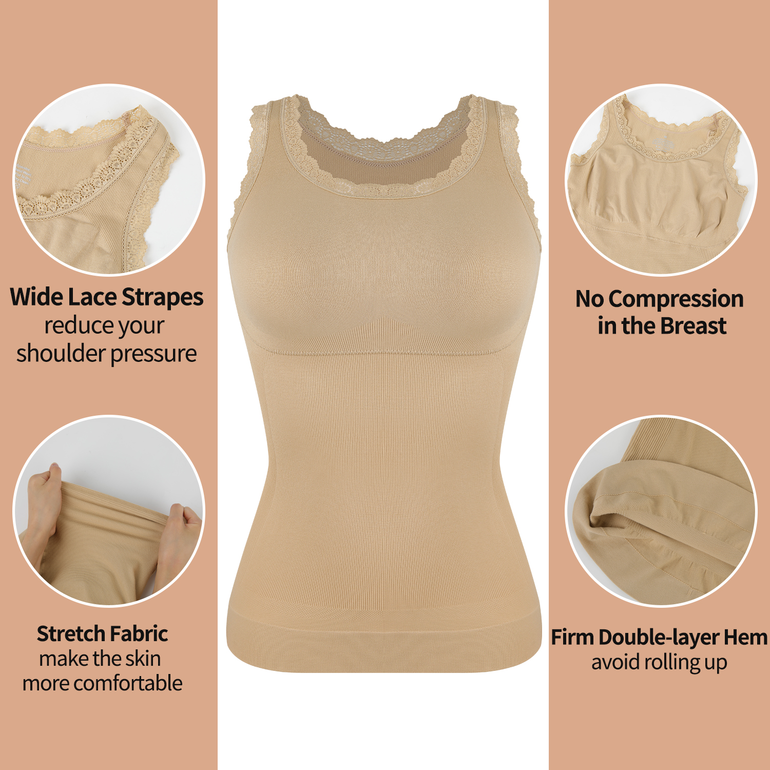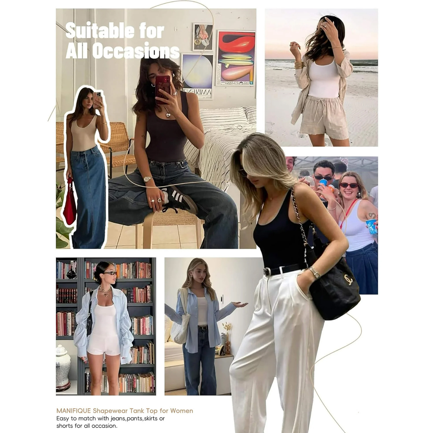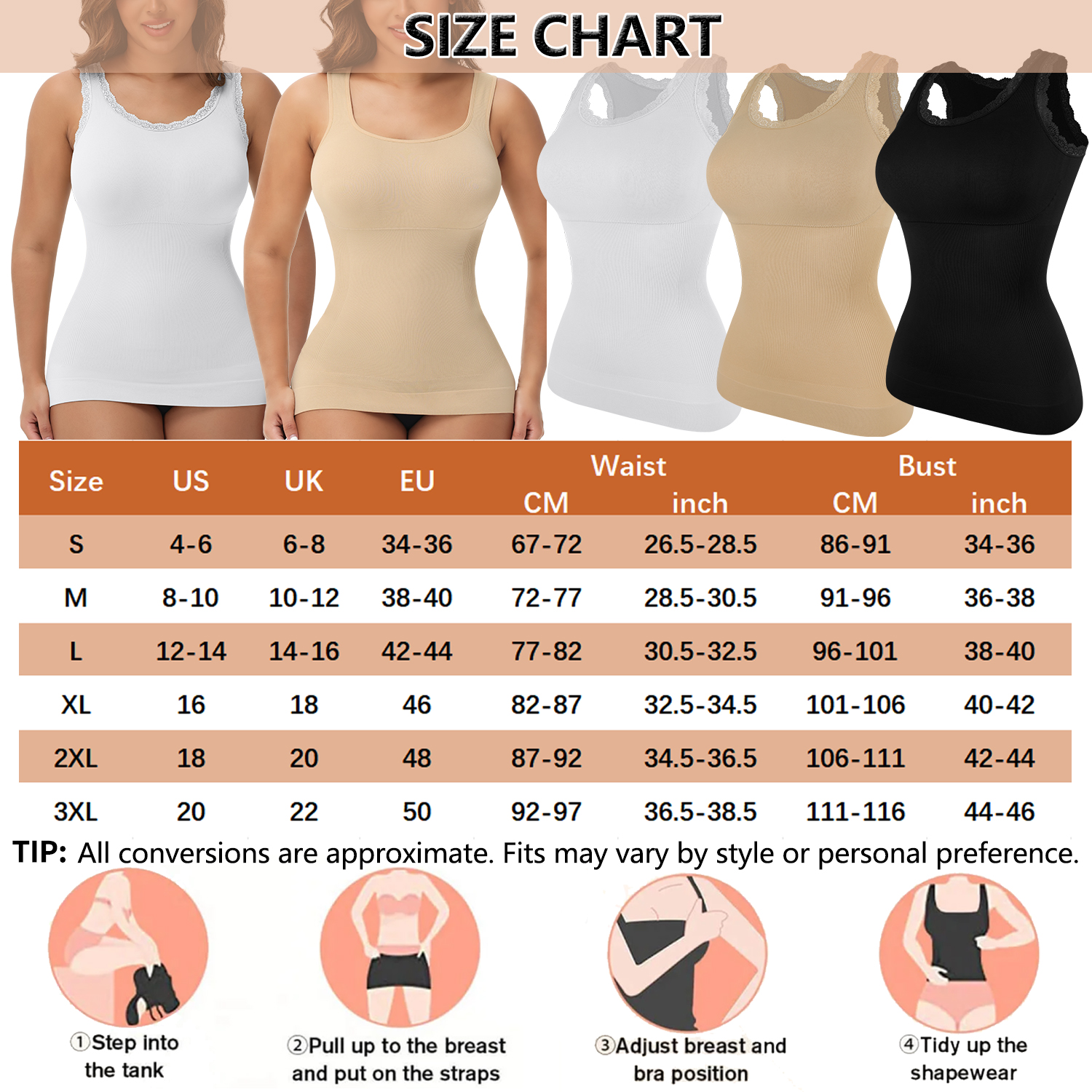 Match - Shapewear camisole perfectly paired with various pants, skirts, or jackets etc, as a must-have for fashion-forward individuals. Going with all occasions and Showing your flattering body curves.