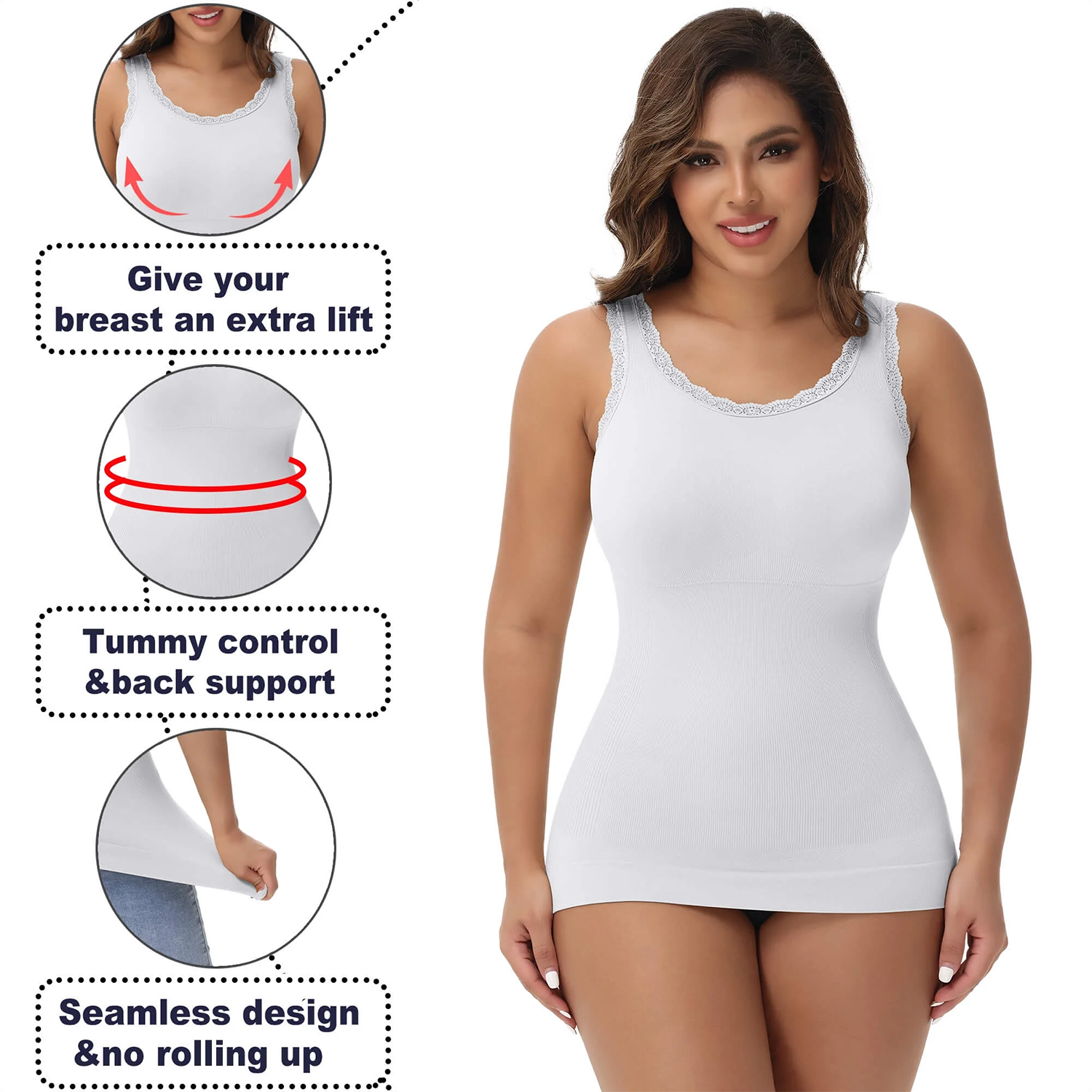 Look Flattering on All Body Types - This body shaper for women cami would flatter any body type.Our stretchy tank tops can hide your love handles, flatten your belly and enhance feminity.