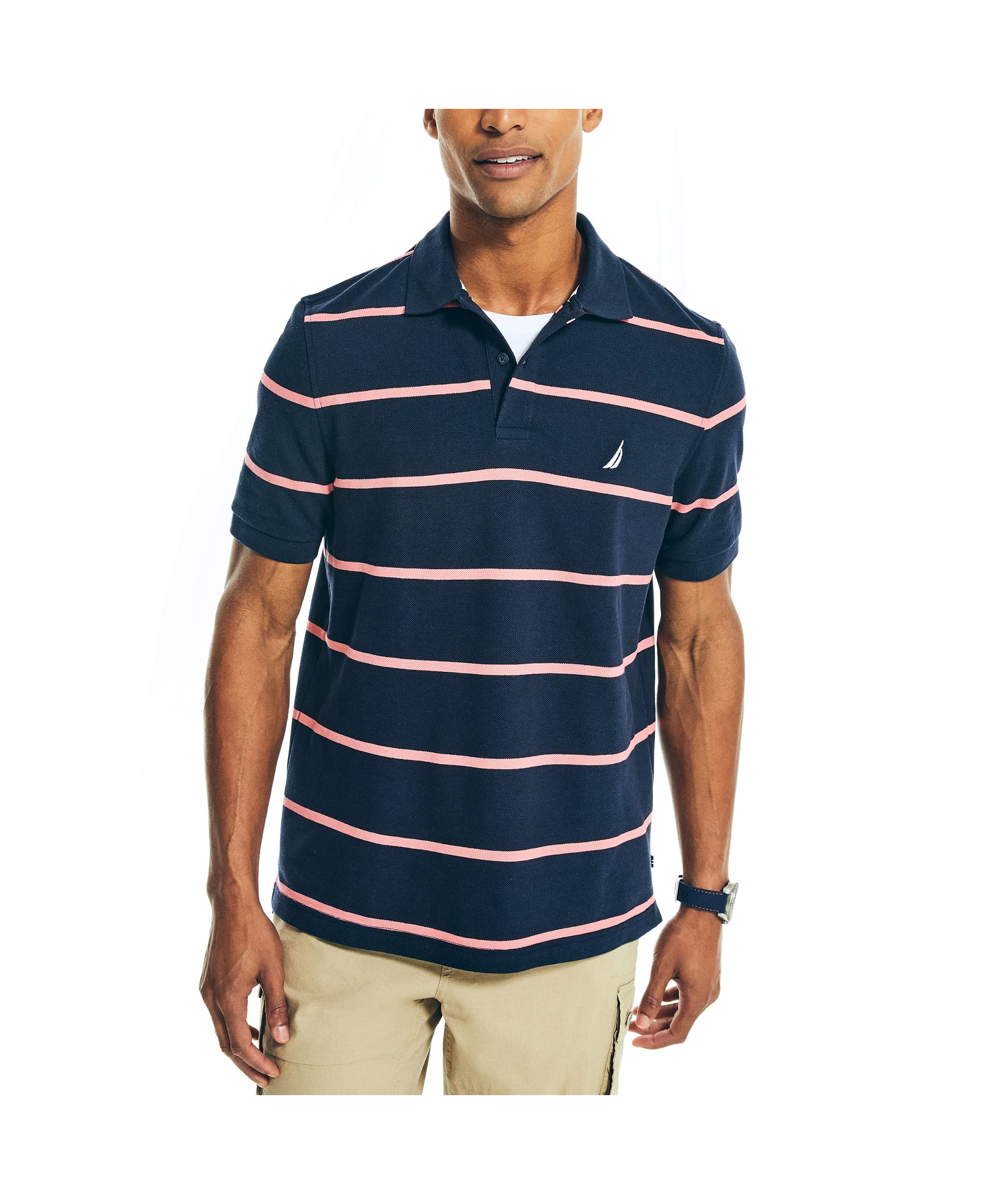 Nautica Men's Classic Fit Striped Performance Deck Polo,Navy,L