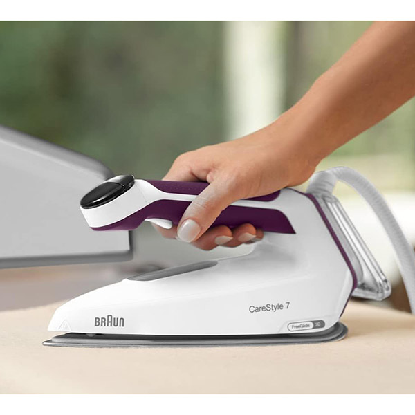 Il CareStyle 7 è il sistema di stiratura più potente di Braun, che offre risultati di stiratura professionali grazie alla potenza del vapore ad alta intensità. Dotato della rivoluzionaria tecnologia PowerSteam, CareStyle 7 consente di eliminare rapidamente anche le pieghe più difficili.