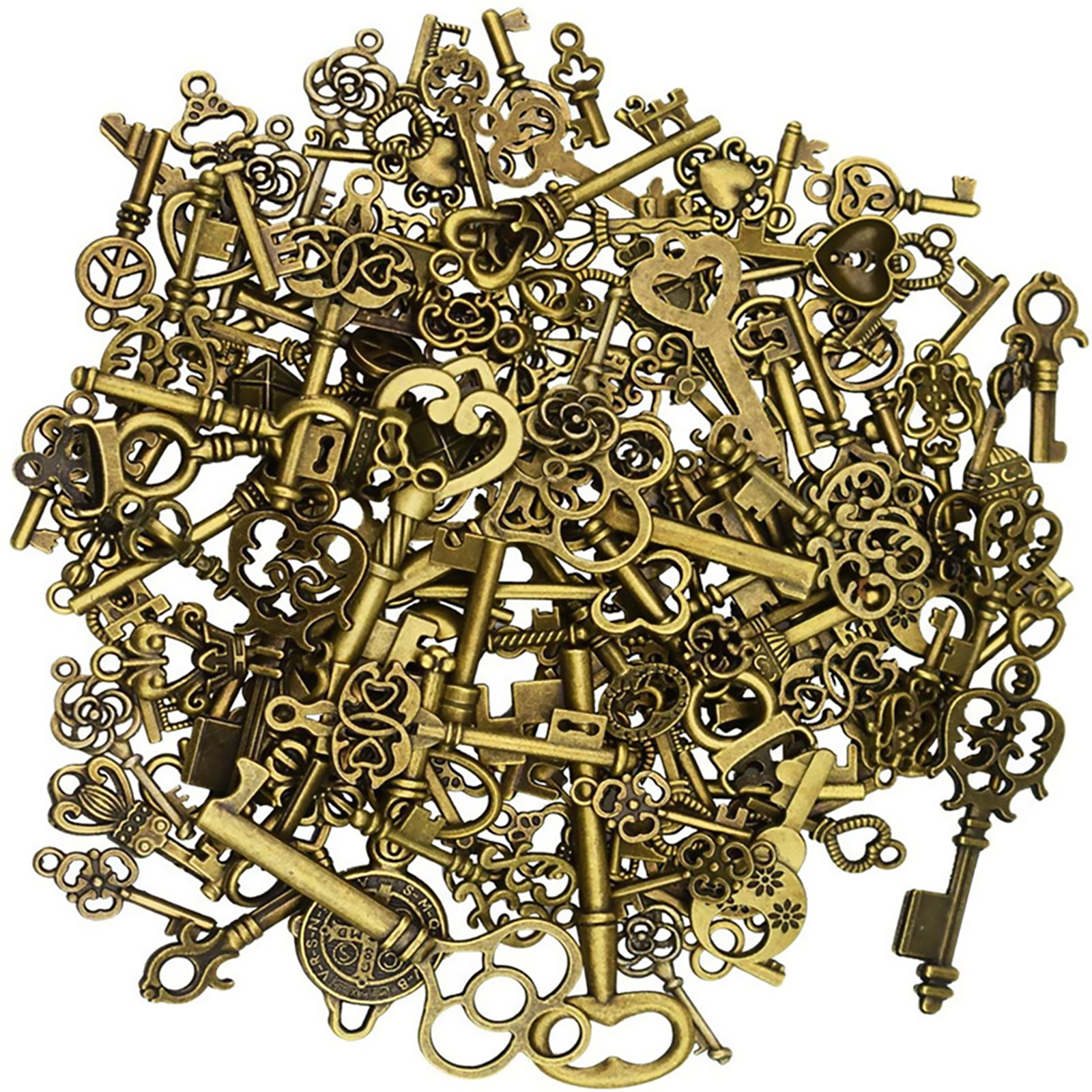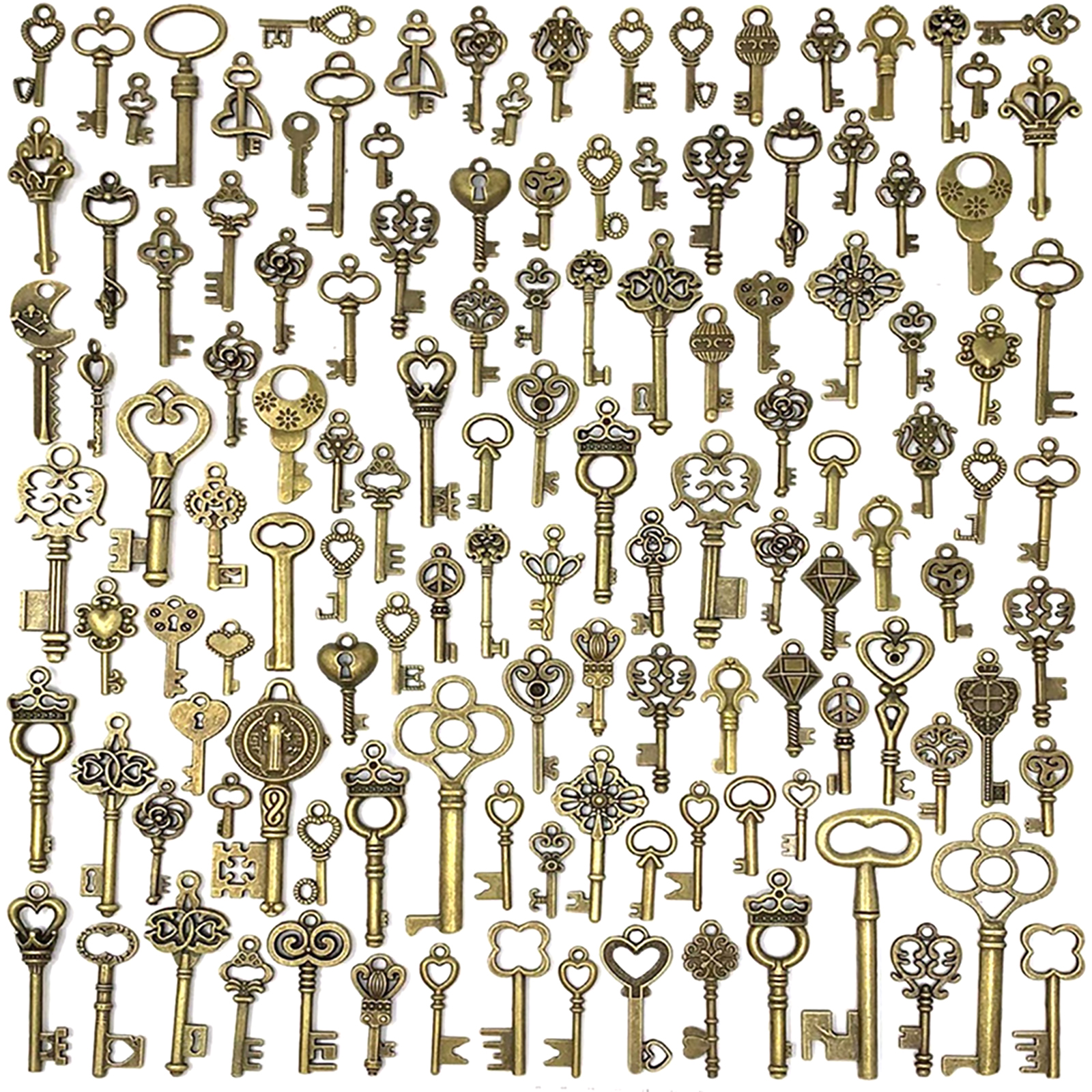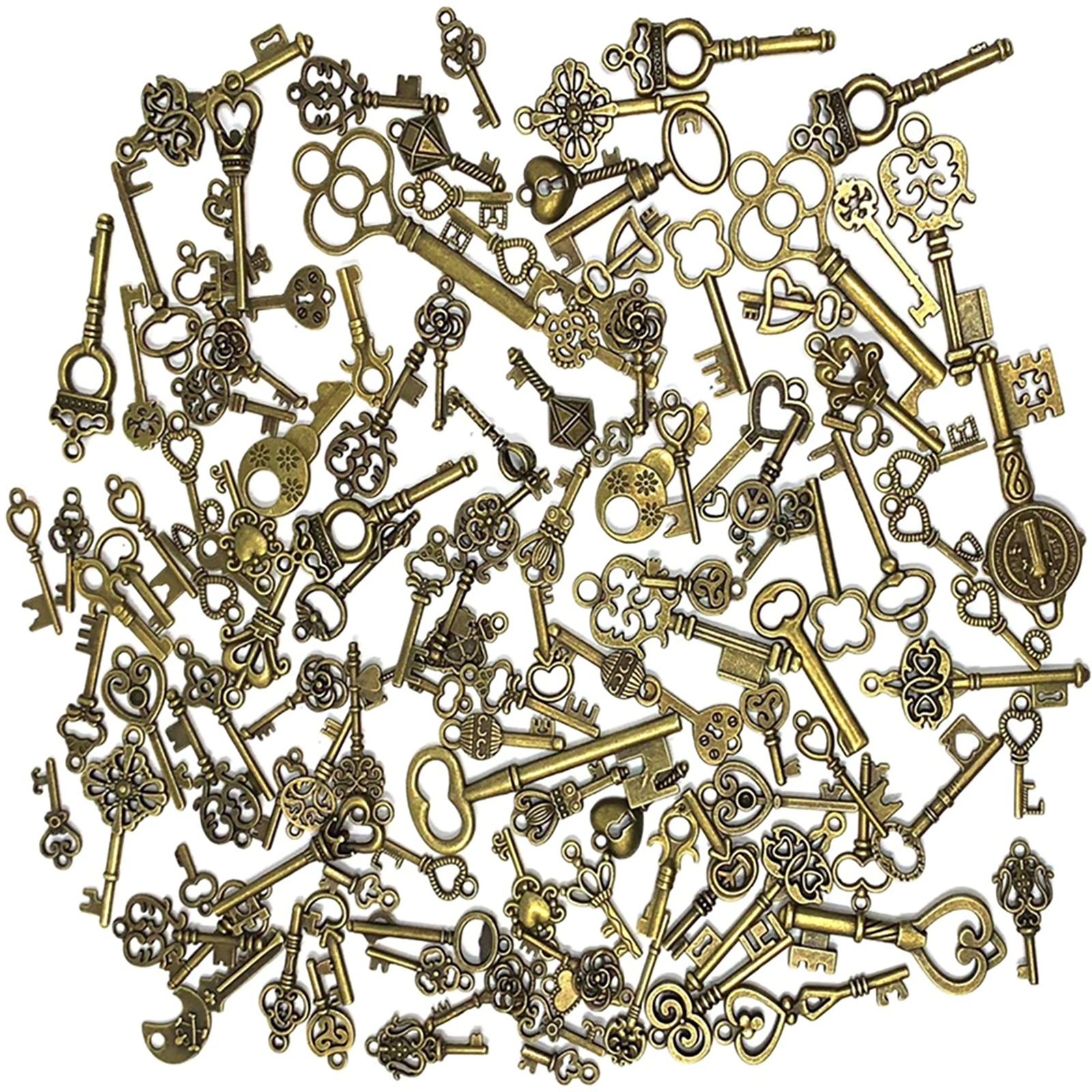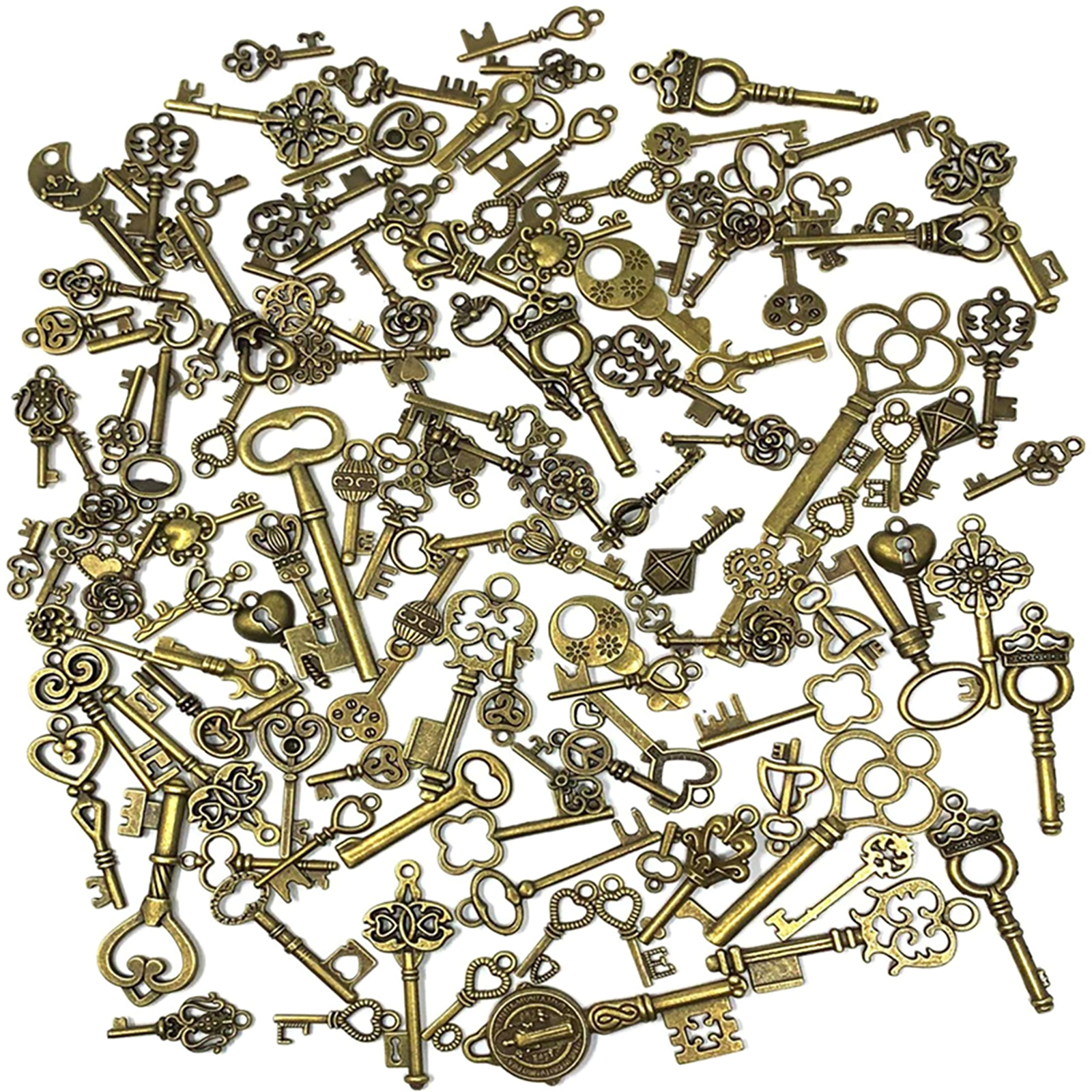 Item include 125pcs mixed skeleton keys with many exquisite and unique shapes are included, such as heart shaped, crown shape, hollow carved shapes and so on.