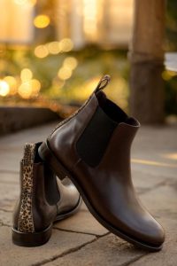 Crafted with dark brown painted calf leather and featuring a striking leopard print, these boots are anything but ordinary. The contrast of patterns and textures creates a bold and daring look that will surely turn heads. The sleek and streamlined silhouette of the Chelsea boot is enhanced by the addition of a black elastic insert, ensuring a snug and comfortable fit.
