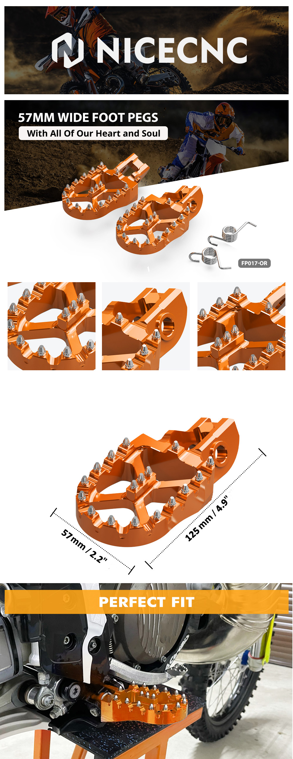 CNC exclusive “X” bridge design Billet Wide Foot Pegs,Made from High Quality 7075-T6 Aluminum Alloy with Anodized Surface Finishing.