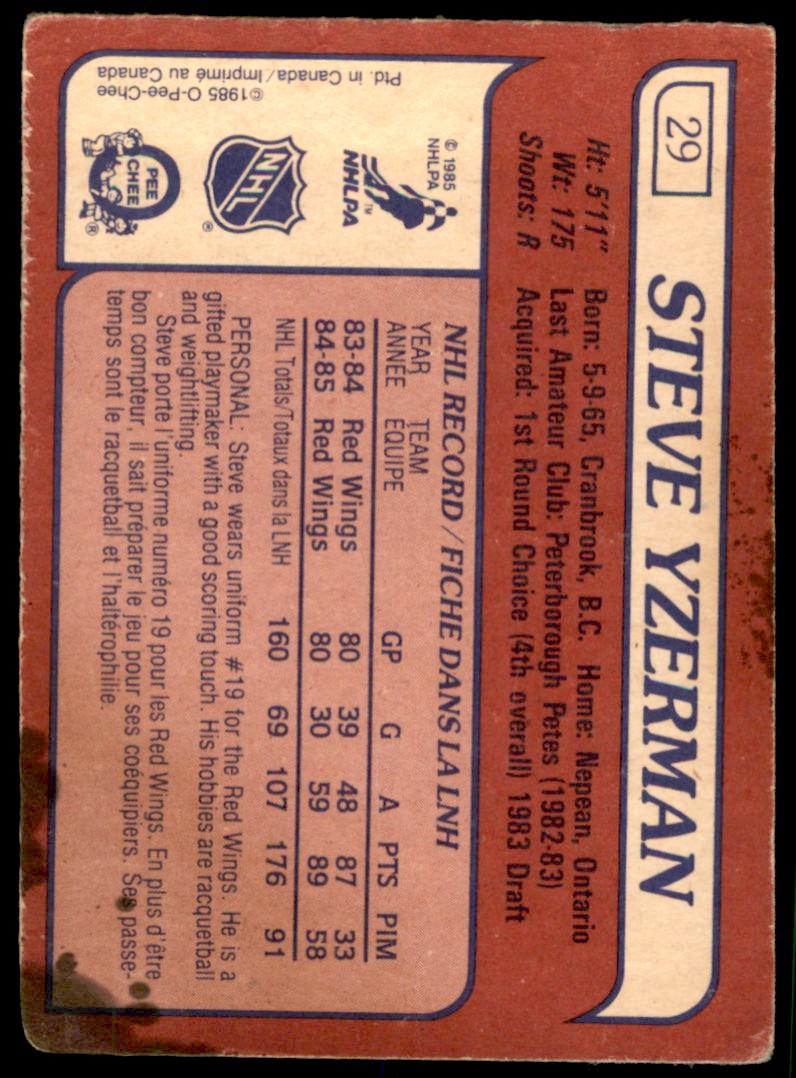 | 1985-86 O-Pee-Chee Steve Yzerman Detroit Red Wings #29 |