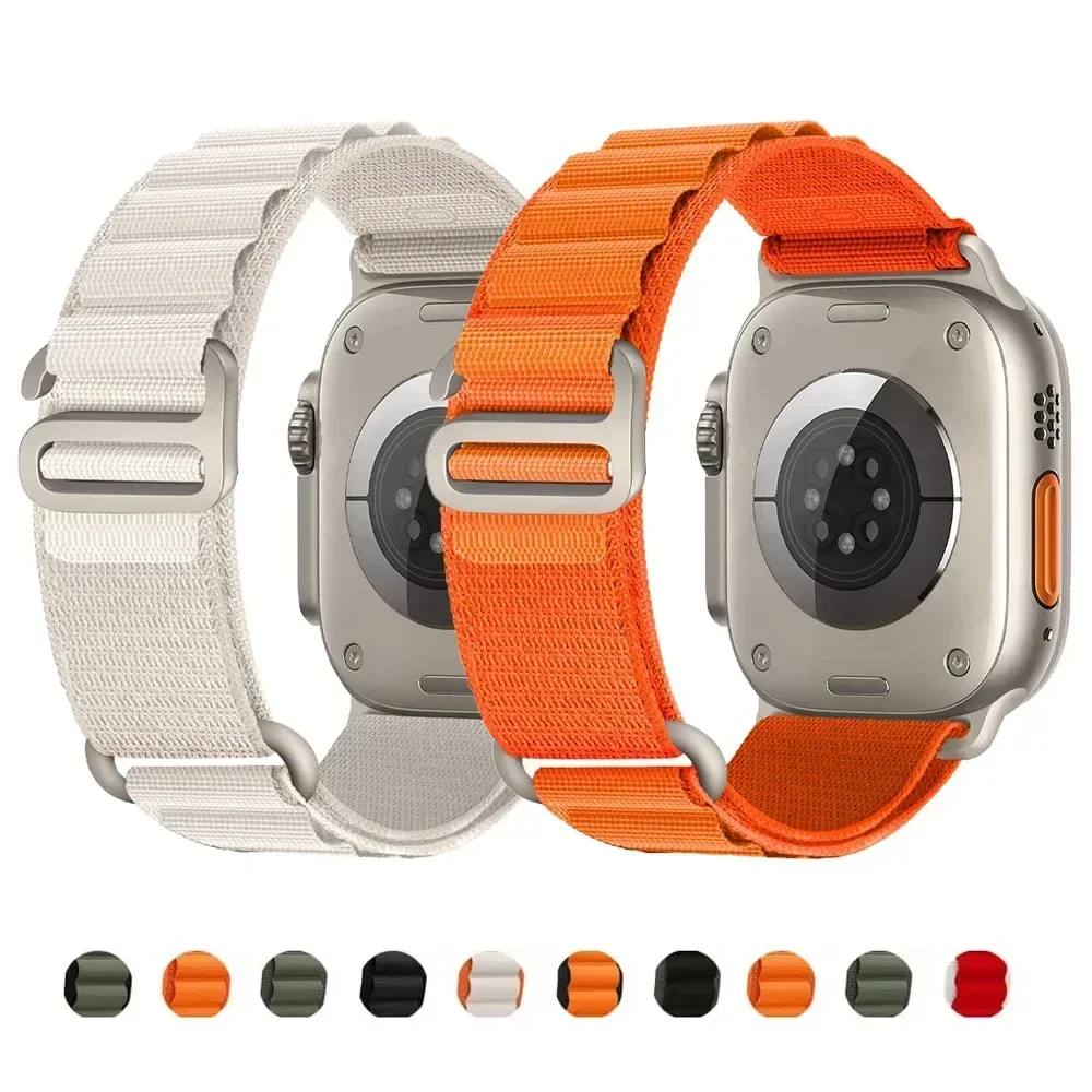 Premium Material - The rugged Alpine Loop is made of two textile layers woven together into one continuous piece without stitching, the high-strength nylon reinforce the top loops,and that make the apple band secure, comfortable , washable, brethable and lightweight.