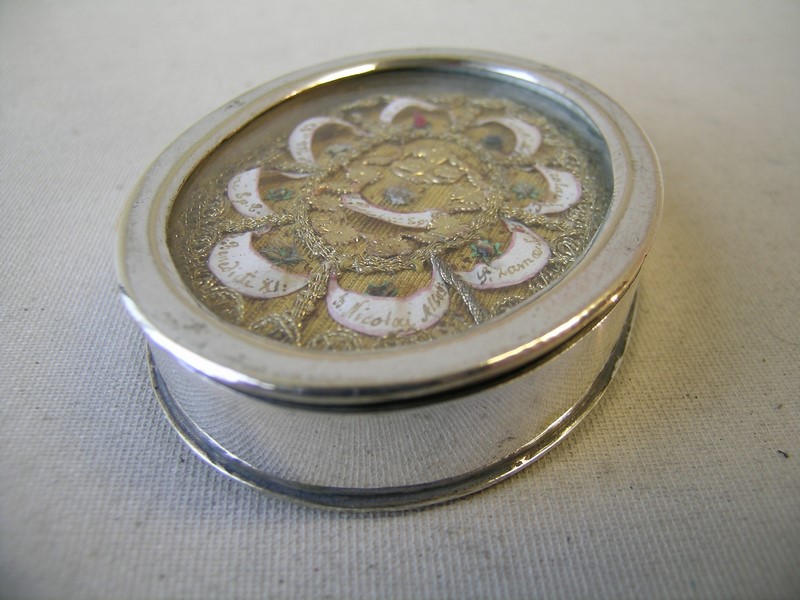 policy,this reliquary does not contain human remains but only objects of devotion.