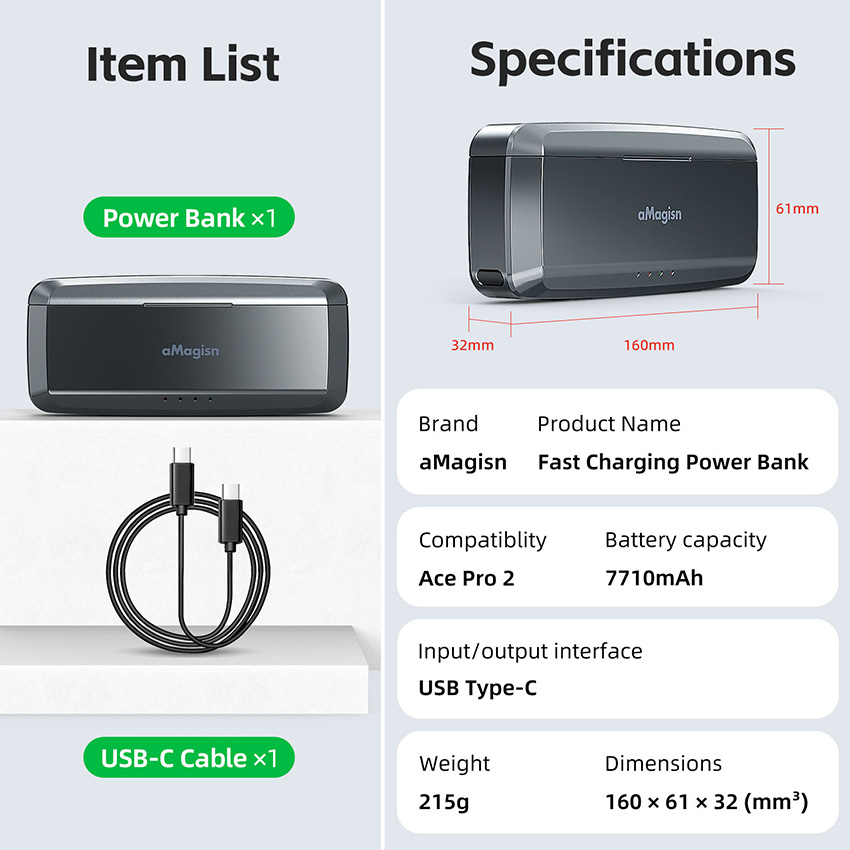 l 1x Mobile Power, 1x Charging Cable