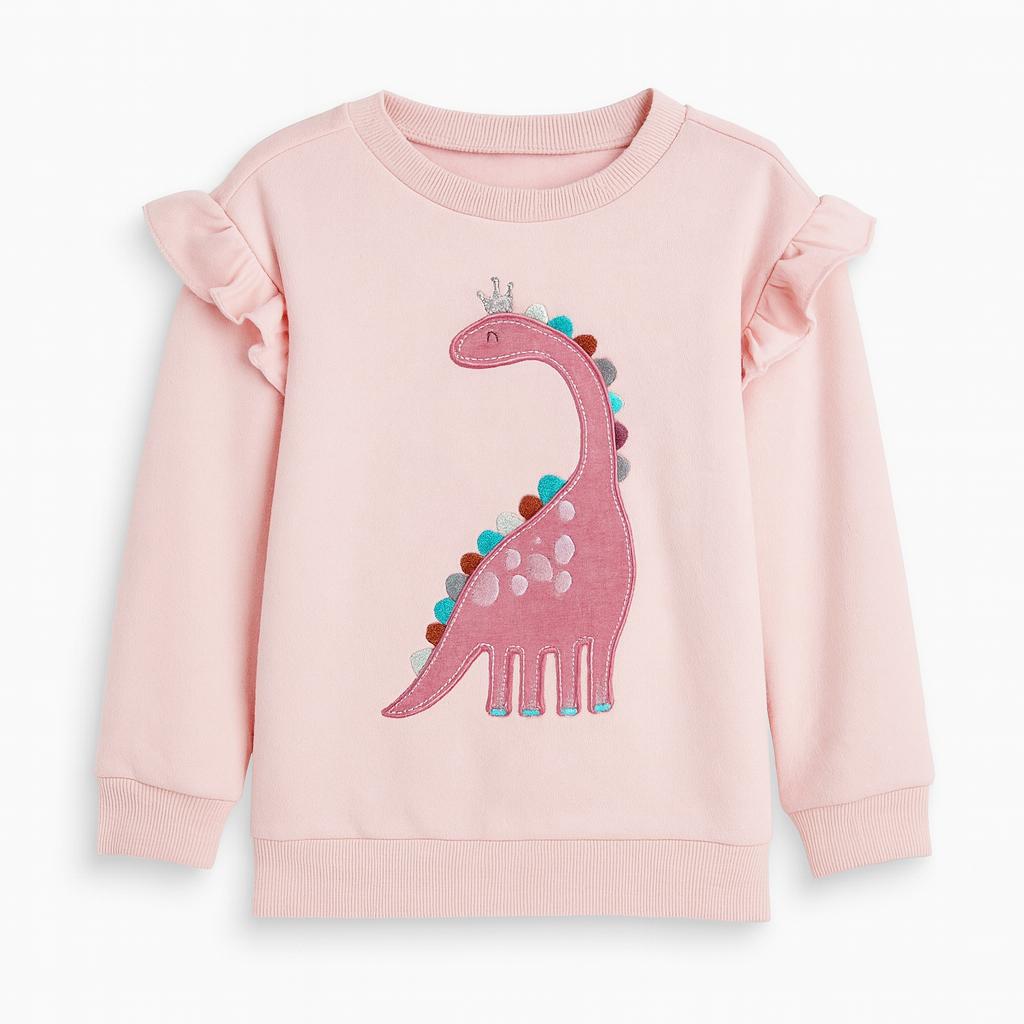 Ruffled and super-warm fleece make this pullover top comfortable and cute at once, featuring a colorful dinosaur applique by Kids Headquarters.