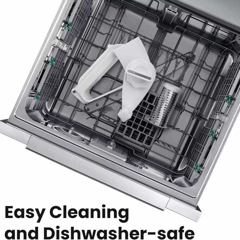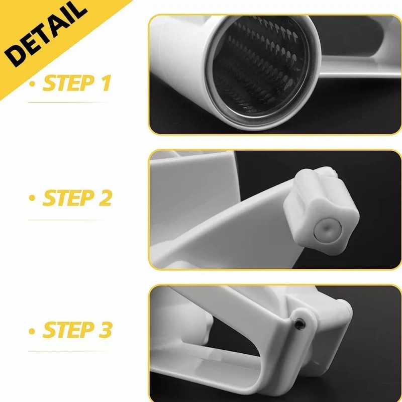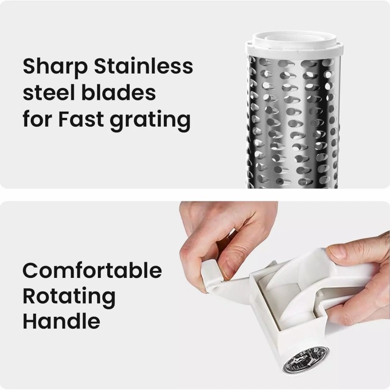 The cheese grinder consists of three detachable components,so you can remove and clean the handle and hob when you're done using them without getting cheese or other food stuck to the cheese grater.