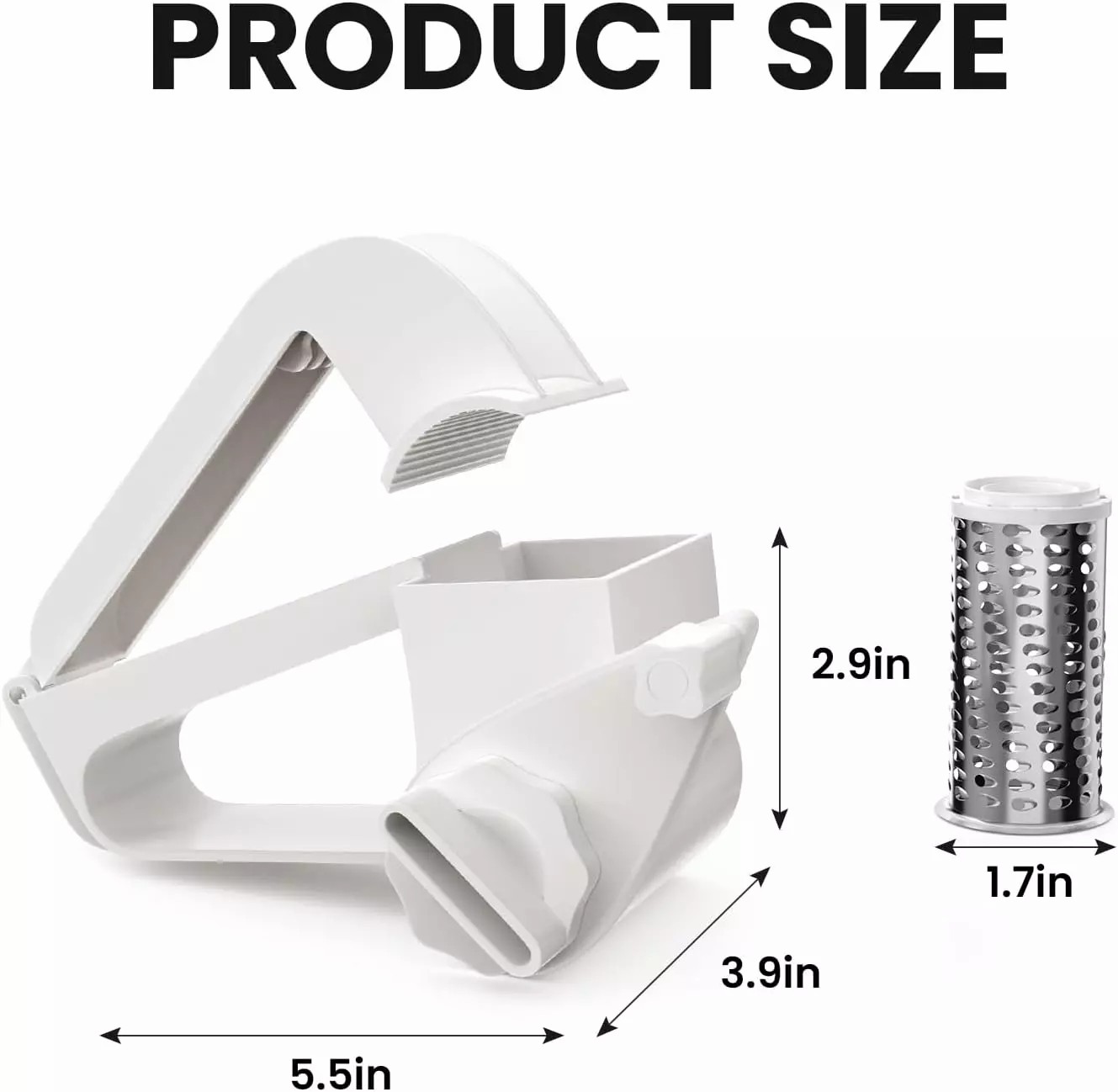 This manual cheese grater is made of ABS plastic and stainless steel, making the grater scratch and heat resistant. Our cheese grater is made of thicker material. The overall thickness is durable and not easy to breaking.