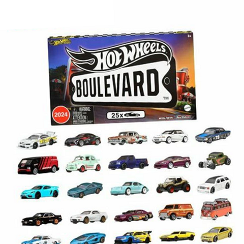 The Hot Wheels Boulevard collection features eye-catching graphics and sweet castings that would stop traffic on Hot Wheels Boulevard if it actually existed. Each of these 25 vehicles is 1:64 scale with a full metal body and chassis, authentic Real Riders tires and detailed graphics! It includes modern and vintage models designed with premium execution for adult collectors. Colors and decorations may vary.