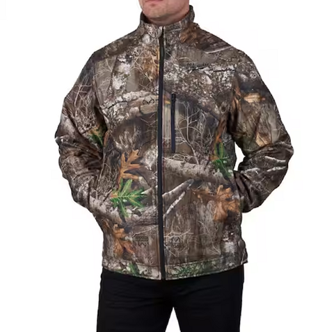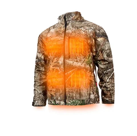Milwaukee M12 Heated QUIETSHELL Jacket Kit CAMO, 3X The MILWAUKEE M12 Heated QUIETSHELL Jacket delivers HEAT BUILT FOR SILENT MOVEMENT. Powered by Milwaukee’s NEW HEXON HEAT TECHNOLOGY, this jacket STAYS WARMER FOR LONGER in all temperatures, delivers the FASTEST HEAT UP TIME, and offers GREATER HEAT COVERAGE throughout the garment. Whether facing freezing outdoor temperatures or navigating spaces with minimal heat indoors, this jacket adapts to its environment to deliver effective heat in any condition. 3X more insulation combined with HEXON HEAT TECHNOLOGY maximizes heat retention and enhances comfort. The hidden battery pass-thru pocket allows for front or back battery placement, increasing versatility depending on the situation. Featuring the REALTREE EDGE camouflage pattern, the durable 100% stretch polyester fabric with DWR finish is a go-to for shielding against the elements and reducing noise from movement. Milwaukee Heated Gear is developed in collaboration with feedback from users across the trades through continuous jobsite research.