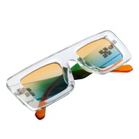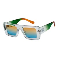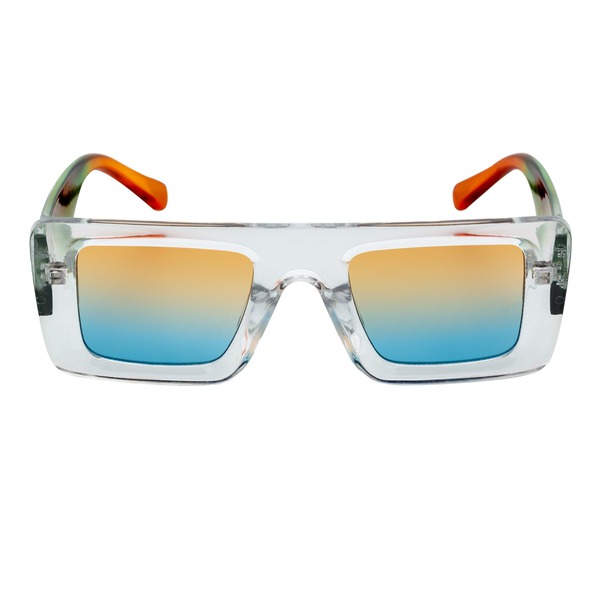The Offset rectangle sunglasses feature a chunky rectangular frame highlighted by pops of two-tone colors. The intersecting arrows motif decorates the arms, and unique color combinations create a bold, fresh style with fun, retro vibes. Made with a durable polycarbonate frame, stainless steel hinges, and polycarbonate lenses with UV400 UVA/UVB protection.
