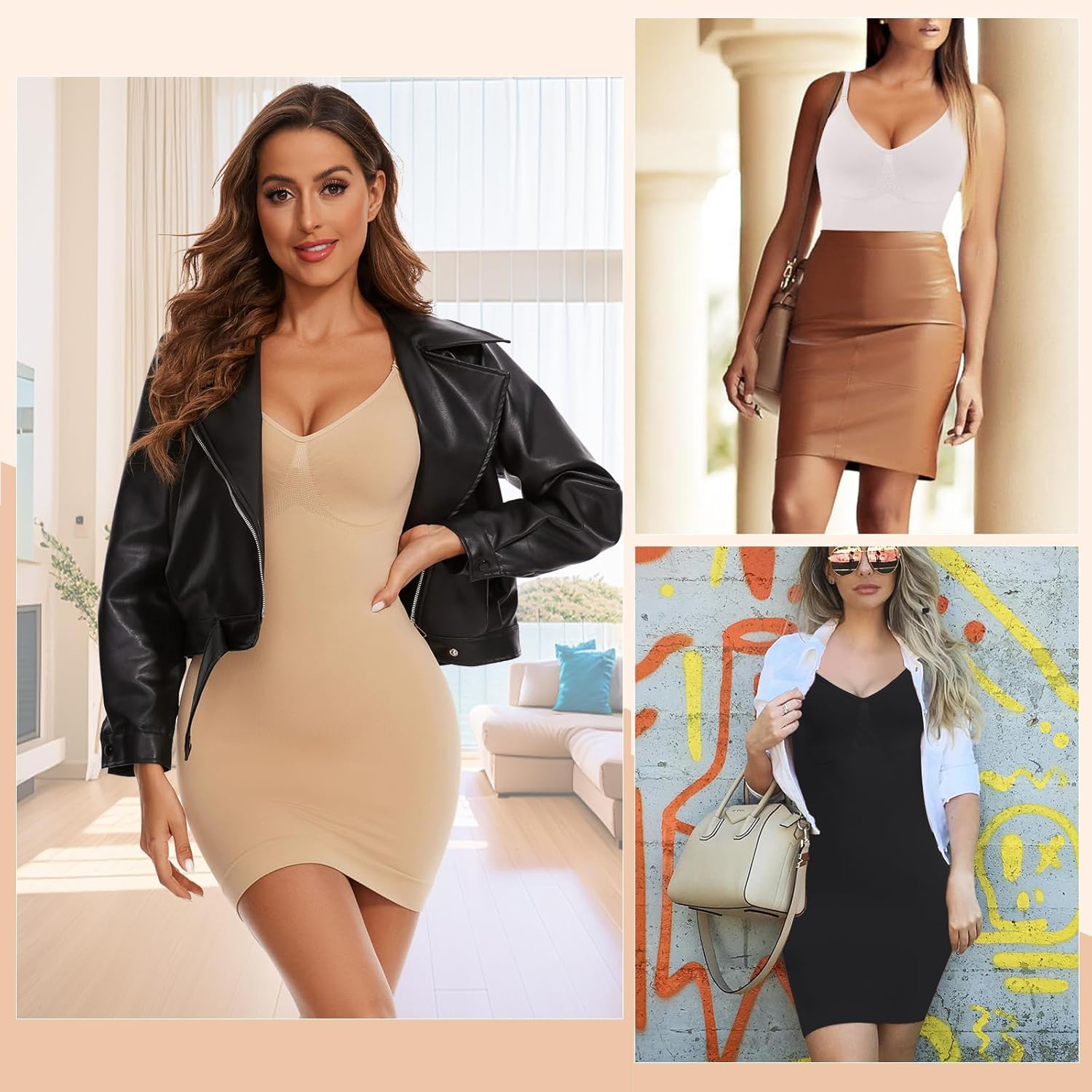 【NO Rolling Shapewear Full Slip】With full slip shapewear smooth anti-slip hem, shapewear slips for under dresses won't roll up with walking or sitting, and the smooth full-slip flatters your whole body and stays in place. A super comfortable fit that hugs your curves, stretchy fabric won't restrict your movements but will enhance your curves and add more definition to your butt, making it look fuller.