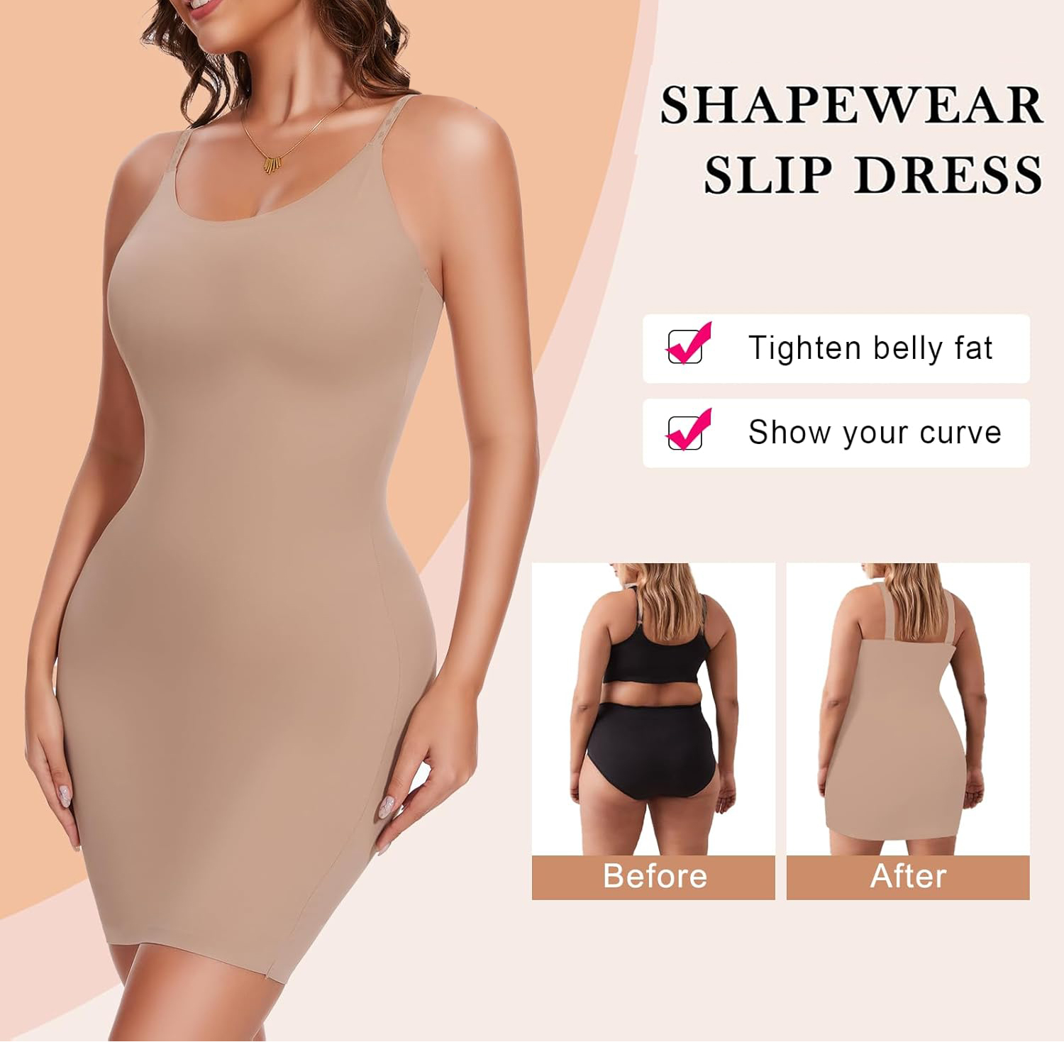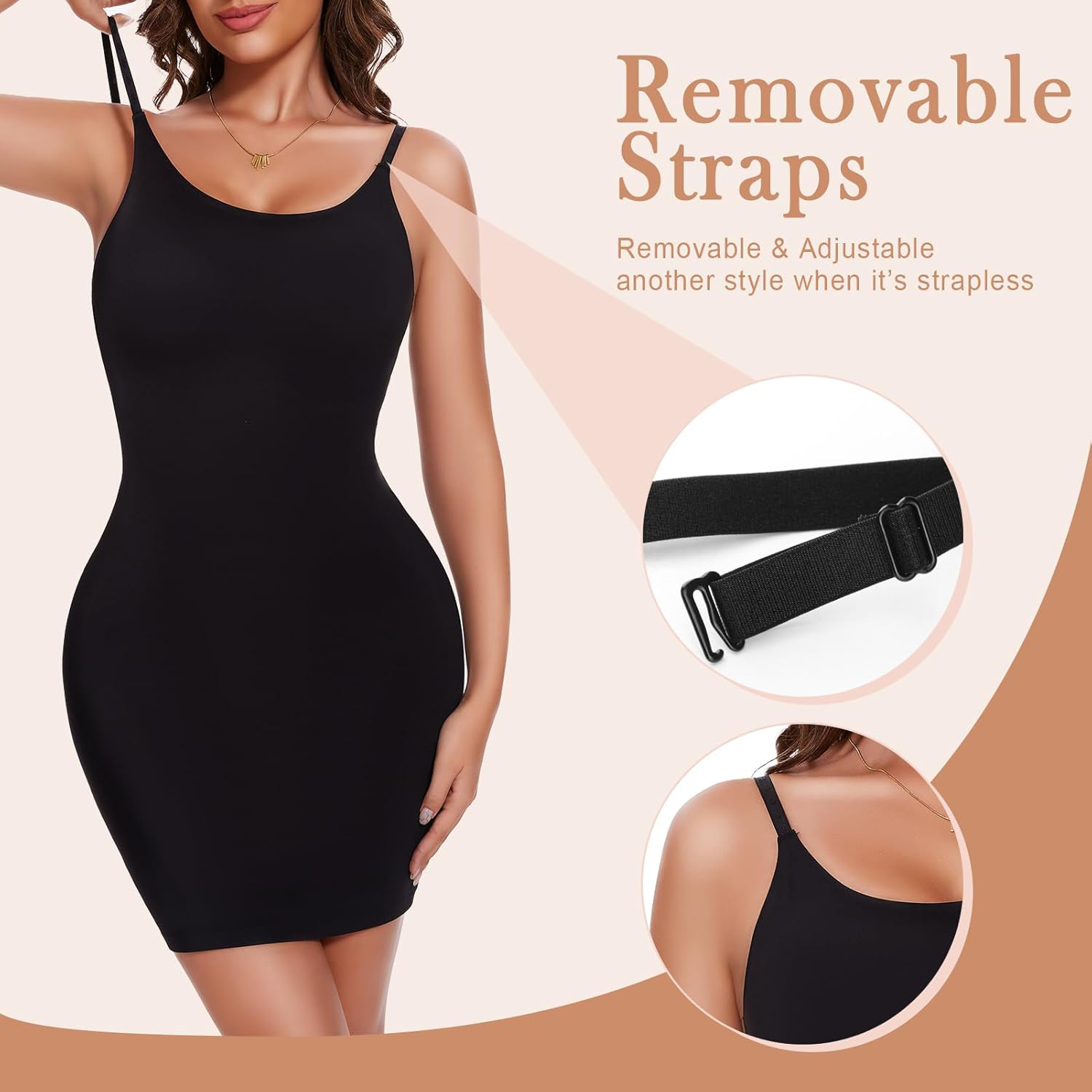【Full Slip Tummy Control Shapewear for Women Under Dress】This shapewear dress is good as full slips for under dresses, smooth out side stomach rolls and tighten out your tummy, waist and back fat, give you all the right curves in all the right places, shapewear slip keeps everything intact while stay comfortable. If you want to have a loose fitting, you can choose a size up. remove them to suit different occaions. Tube top design wrap your chest better.