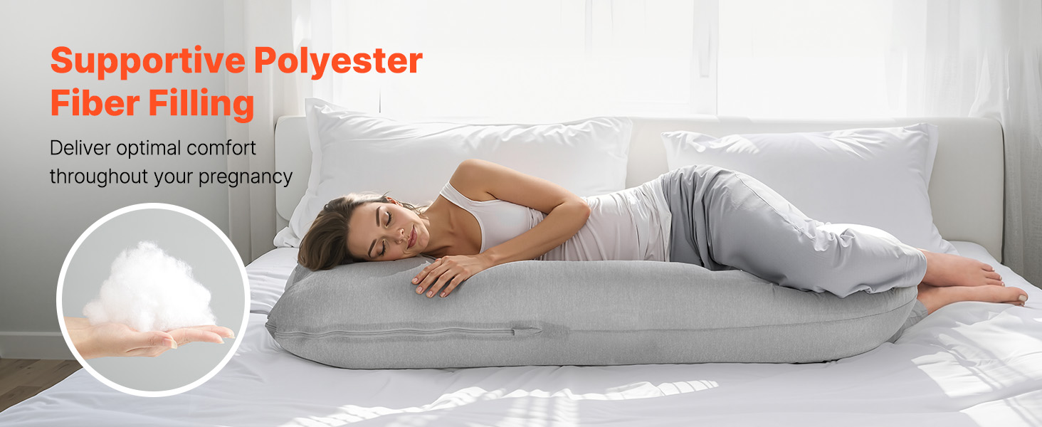 Notre coussin de maternité est rempli de fibres de polyester de haute qualité, offrant un équilibre parfait entre soutien et confort pour votre corps. Conçu pour soulager la pression et favoriser la relaxation, il vous aide à vous détendre et à profiter d'une expérience reposante.
