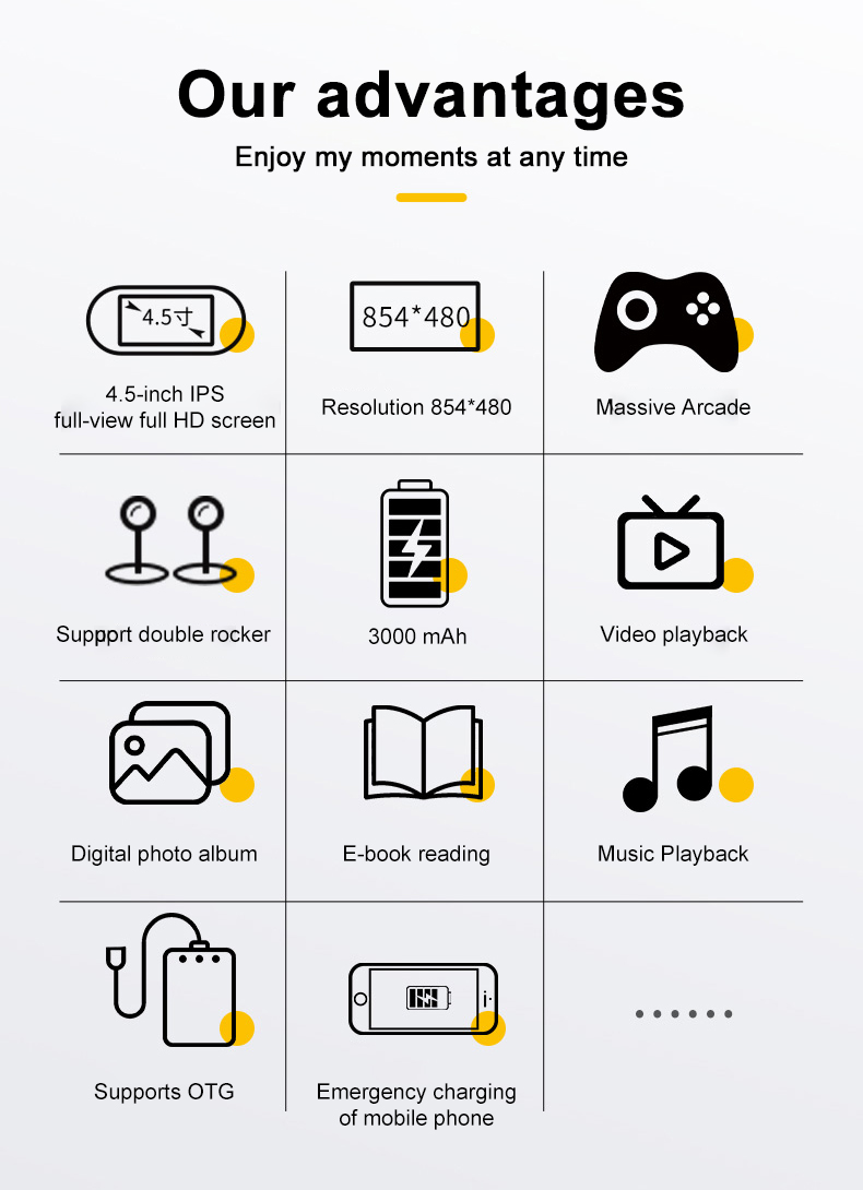 This handheld game console has multiple core functions, built in more than 20000+ selected classic games.IPS high-definition smooth screen with high-precision joystick, support for downloading and collecting games, support for 14 kinds of emulators, covering a wide range of games.