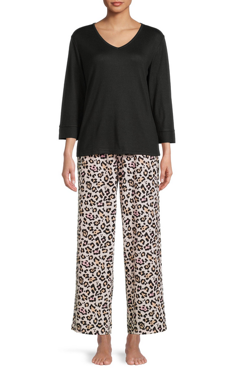 HANES Womens Pajama Set Black / Animal Print Small $48 NWT