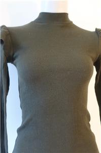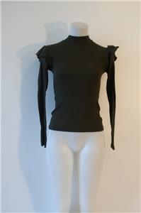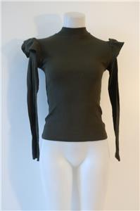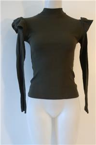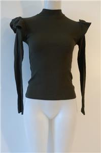 - Womens Zara Trafaluc Olive Green Ribbed Mock Neck Ruffled Shoulder Top S