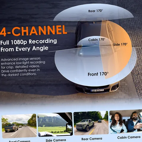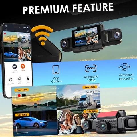 Experience unparalleled protection on the road with the Rexing RW4 4-Channel Dash Cam. This advanced dash cam captures every angle of your vehicle with its four-camera setup, providing full 1080p HD resolution for crystal-clear footage. The IR night vision feature ensures that even in low-light conditions, you will have detailed recordings of your surroundings. The built-in Wi-Fi allows for seamless connection to the Rexing Connect App, enabling you to download and share videos directly from your smartphone. You can also adjust settings and access live view without needing to remove the device. With loop recording, you never have to worry about running out of storage space as it automatically overwrites old footage. The G-Sensor feature locks crucial files in case of a collision, ensuring that important evidence is preserved. Additionally, the dash cam includes a parking mode that records incidents even when your vehicle is off. Choose between adhesive or suction cup mounts for flexible installation options. The included 32GB microSD card means you can start recording right away. Upgrade your driving experience with the Rexing RW4—your ultimate driving companion.