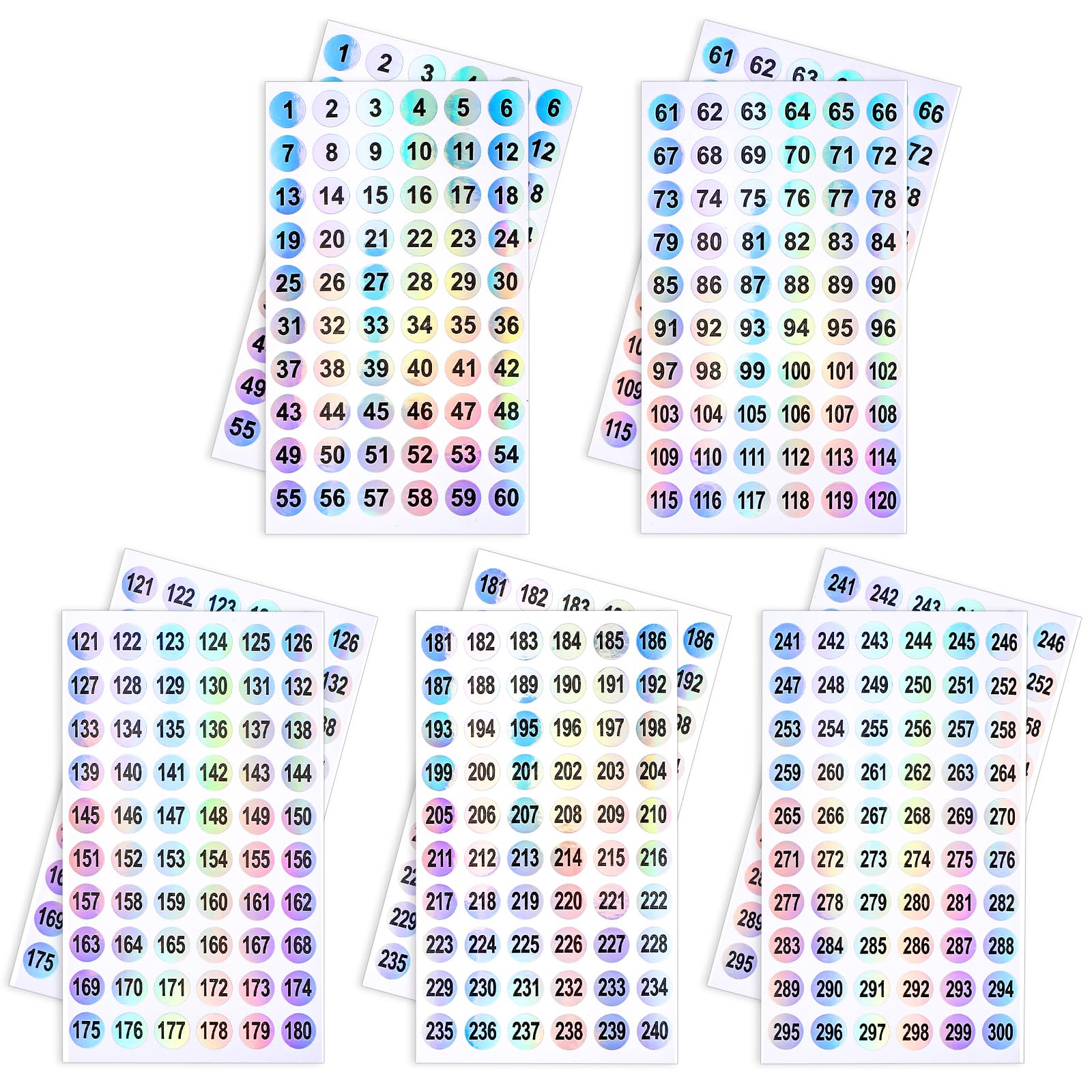 - Lot d'autocollants numérotés : vous recevrez 10 feuilles d'autocollants ronds réfléchissants au laser, un total de 600 autocollants ronds, chaque autocollant mesure 10 mm de diamètre, disposés consécutivement de 1 à 300, vous aidant à numéroter quelque chose et à organiser la vie.
