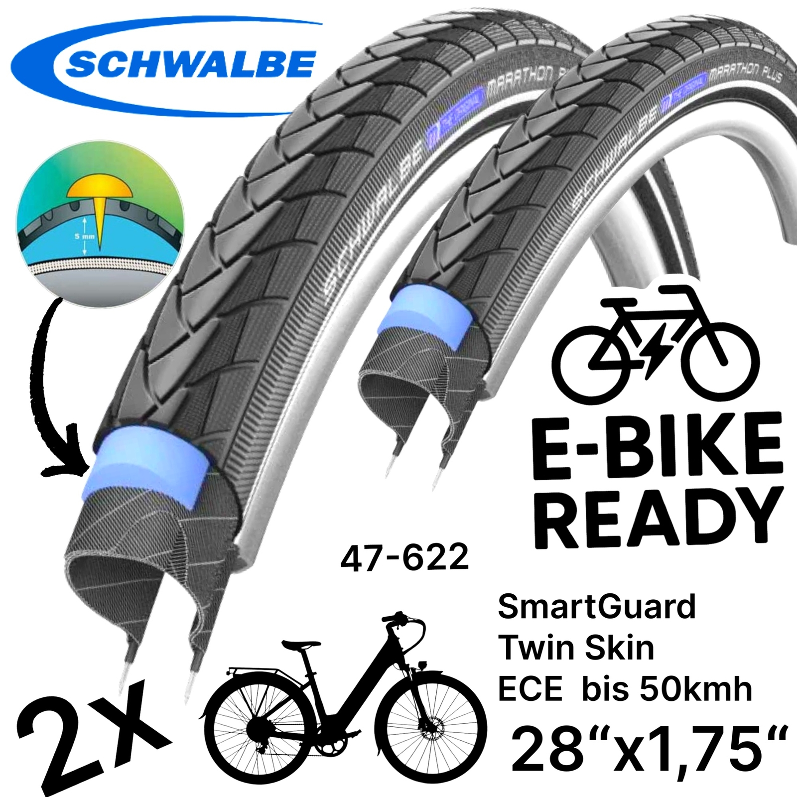 Schwalbe Marathon Plus 28"x 1,75" City Ebike Tour SmartGuard 47-622 Pannenschutz Reifen