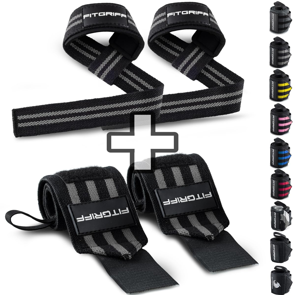 ® Sangle de Tirage + Bande Poignet Musculation (1 Lot) - Accessoires pour Fitness, Gym et Haltérophilie (Black/Grey)