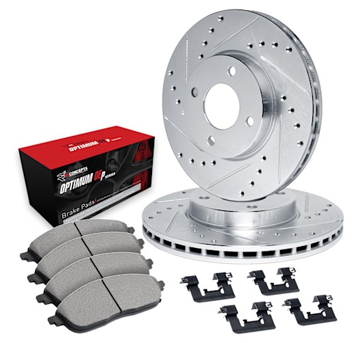 Transform your daily drive using R1 Concepts Brake Disc and Pad Kit. This product enhances braking performance, ensuring smoother, safer, and more reliable stopping in various conditions. R1 Concepts eLINE Series Drilled & Slotted OPTIMUM OEp Brake Kit. Designed for drivers seeking increased brake performance over OE with silver zinc plated rotor protection.