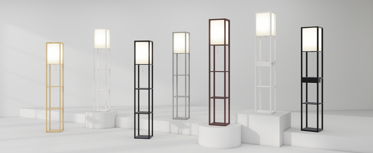 This floor shelf lamp with linen shade illuminates your living space in style with . This gorgeous piece adds versatility as the shelves can be used to display photographs and other memorabilia while the linen lamp shade casts a soft, warming light throughout your living space.