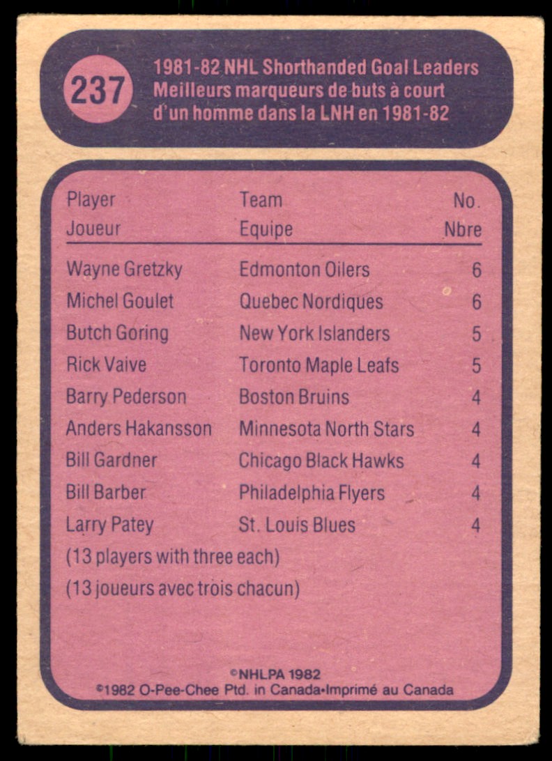 | 1982-83 O-Pee-Chee Wayne Gretzky/Michel Goulet Edmonton Oilers/Quebec Nordiques |