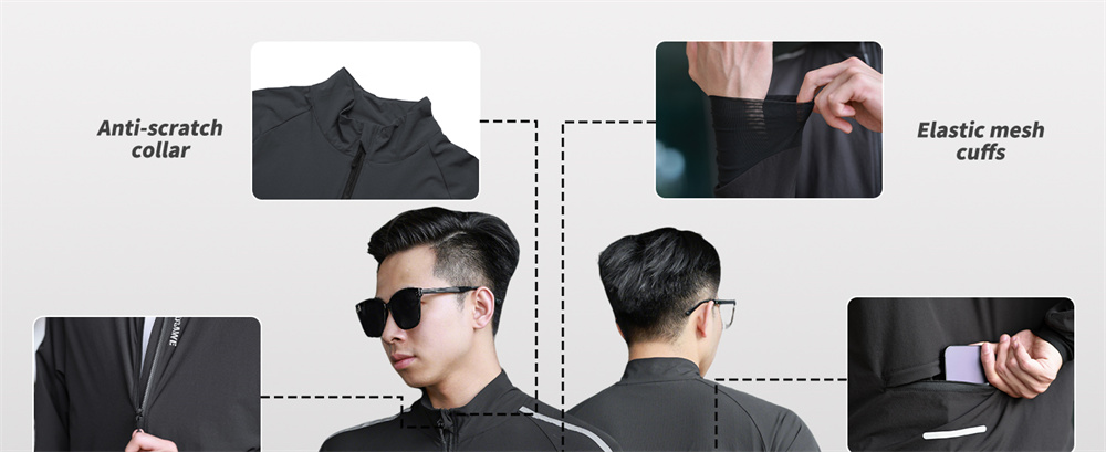 5. 【Sportliche Passform】 Dehnbare Ärmelbündchen, verstellbarer Saum und kratzfester Kragen, uneingeschränkte Bewegungsfreiheit für schnelles Radfahren.