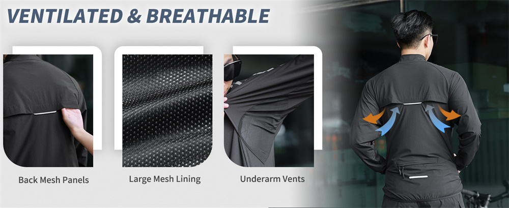 2. 【Ventilation System】 Hinteres Belüftungspanel + Netzfutter im Rücken + Mesh unter den Armen + Mesh am Ärmel für schnellen Schweißtransport.