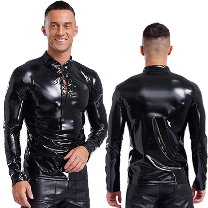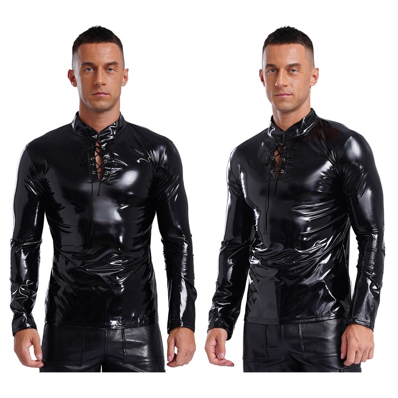 Designed with stand collar, long sleeve, front lace-up with eyelets, solid color, slim fit and stretchy fabric, the pullover shirt is perfect for men.