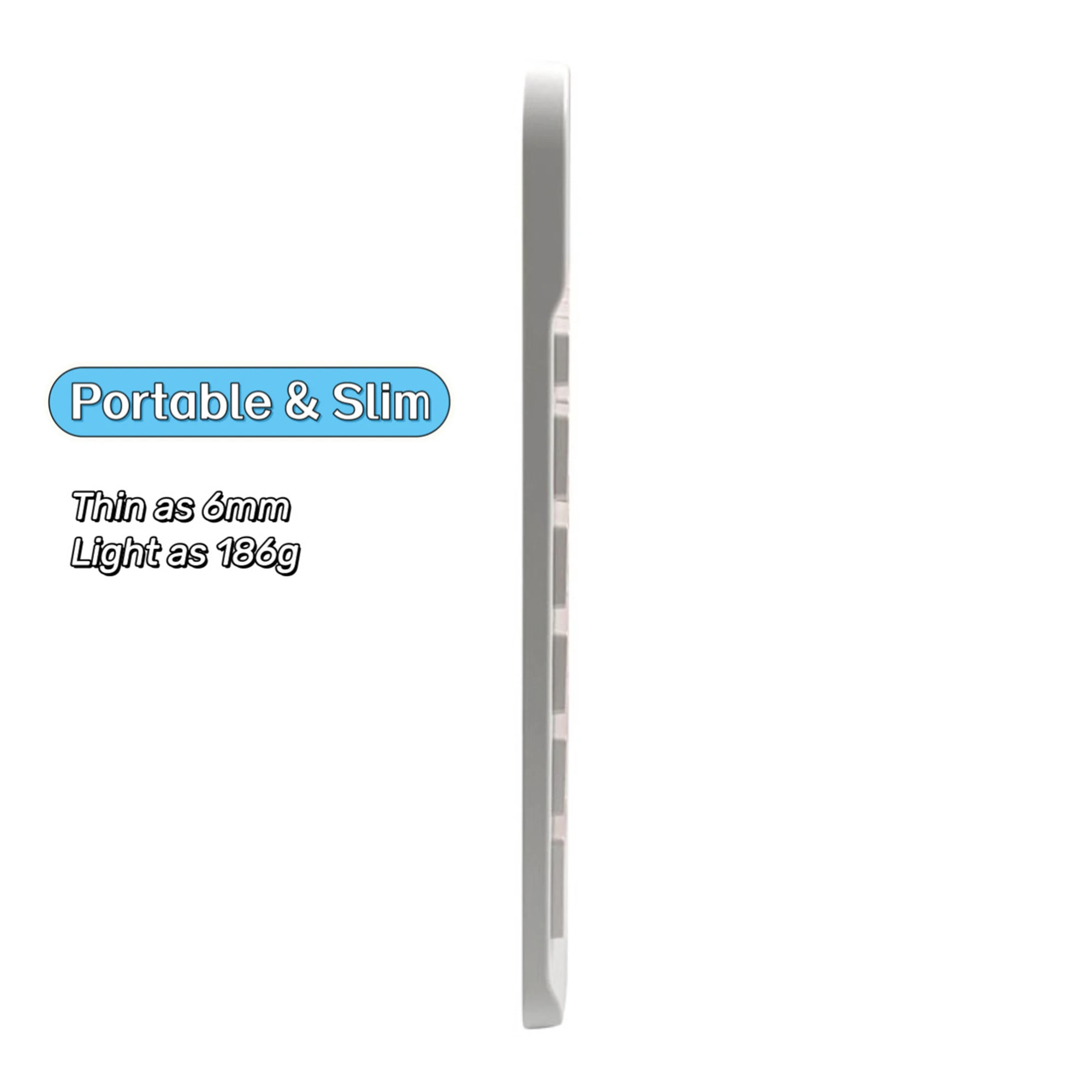 ·Light portable and compact: This keyboard is much lighter, smaller than traditional keyboard. You can easily carry it without taking up more space on your desk or bag. 10 inch keyboard dimensions: 25 x 15 x 0.6 cm, weight: 180g. 【Size: 9.84 x 5.9 x 0.24 inch, weight: 6.35ounce/0.4pounds】