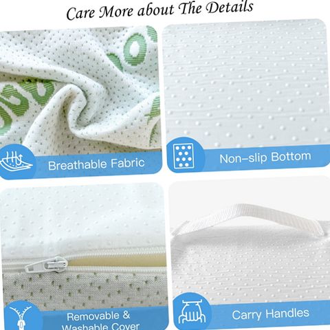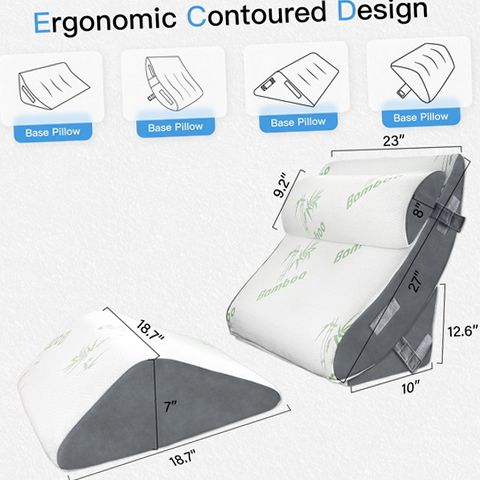 Experience unparalleled comfort with the Airensky Orthopedic Bed Wedge Pillow, expertly crafted to support your body in various positions. This versatile pillow set consists of four adjustable parts that can be combined to create the perfect height for sitting or lying down. Whether you're recovering from surgery or just need extra support while reading or watching TV, this wedge pillow has you covered. Made from high-density slow rebound memory foam, it contours to your body while evenly distributing pressure to avoid discomfort. The breathable bamboo fiber cover is soft against the skin and features an invisible zipper for easy cleaning. Additionally, the anti-slip design ensures that the pillow stays in place, providing stability and peace of mind. Elevate your legs to promote better blood circulation and relieve stress with this multifunctional wedge pillow that adapts to your needs.