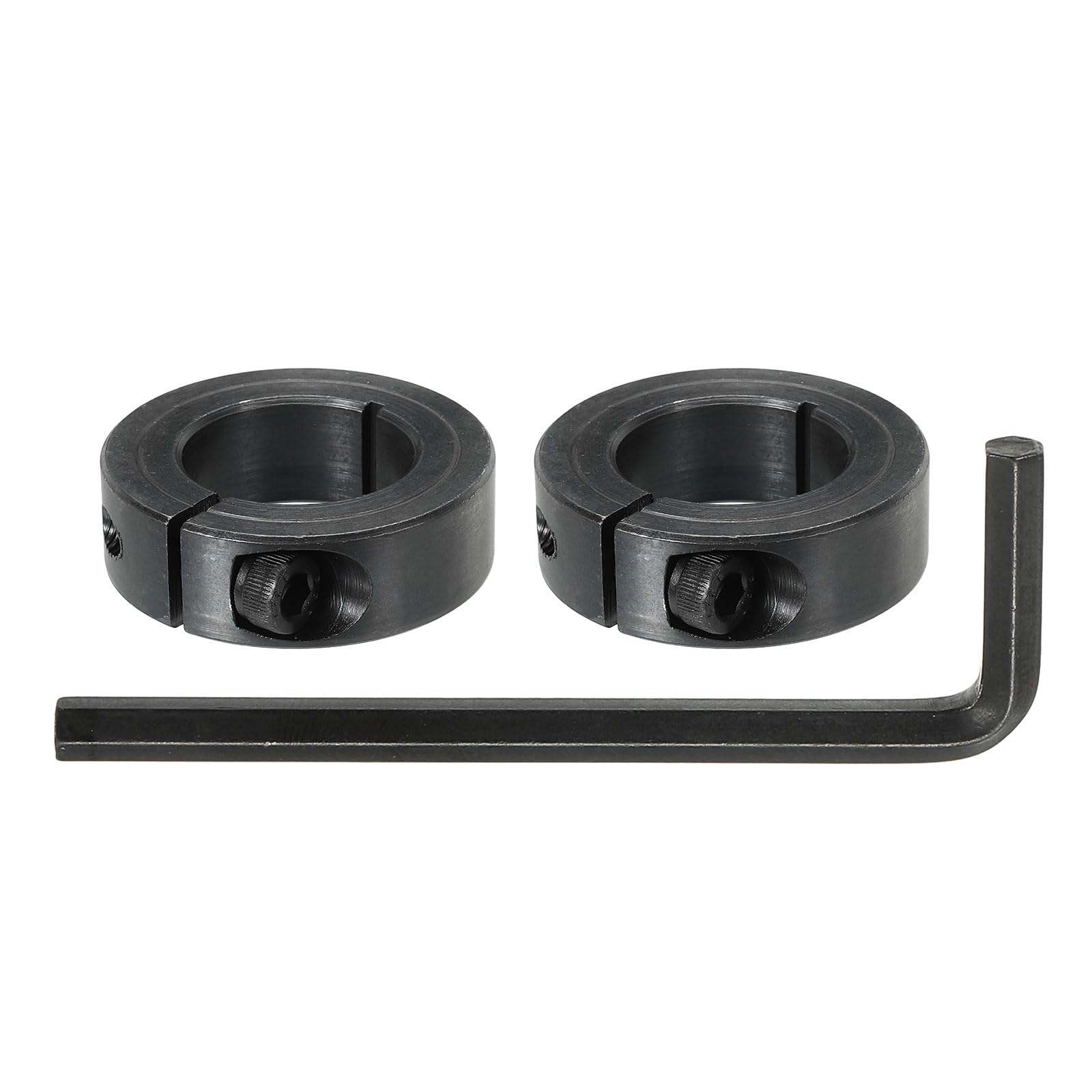Bore 28 mm Single Split Shaft Collar 48 mm OD 15 mm Thickness Carbon Steel Locking Collar Clamp Style with Set Screw & Hex Wrench for Machine Tools Industry (Black, Pack of 2)